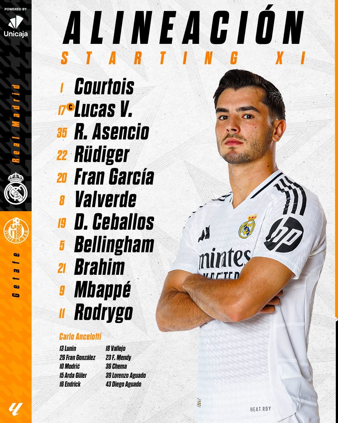 - خط الدفاع: فران جارسيا - أنطونيو روديجر - راؤول أسينسيو - لوكاس فاسكيز.