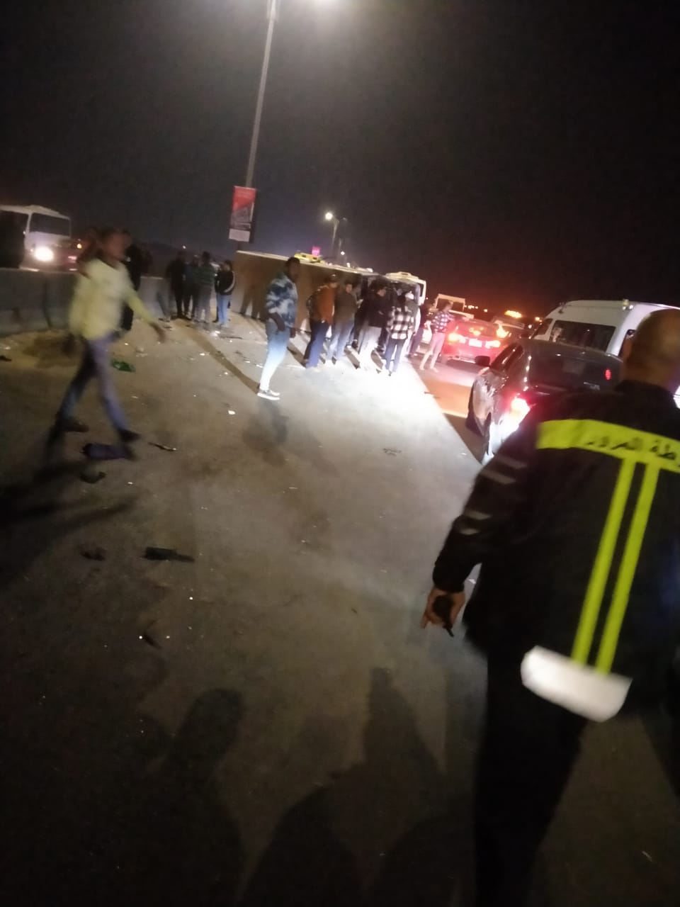 ومن جهة أخرى، أُصيب 8 أشخاص على الأقل بإصابات متفرقة في حادث تصادم وانقلاب أتوبيس يقل عمالا إحدى الشركات مع سيارة نقل بمنطقة عتاقة أمام شركة السويس للصلب.