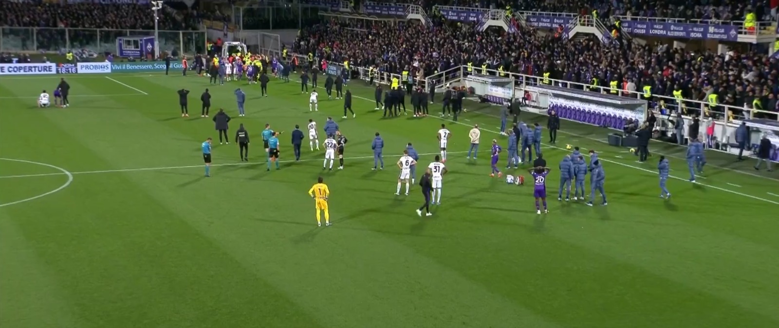 وتوقفت مباراة فيورنتينا وإنتر ميلان عقب سقوط اللاعب إدواردو بوفي في الدقيقة 16 من عُمر المباراة.