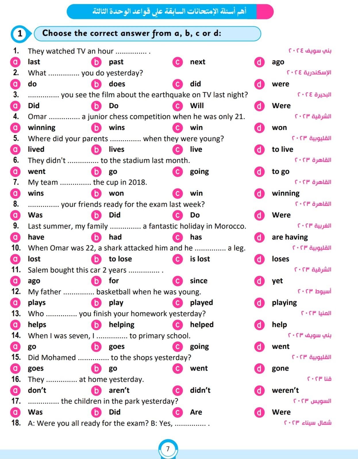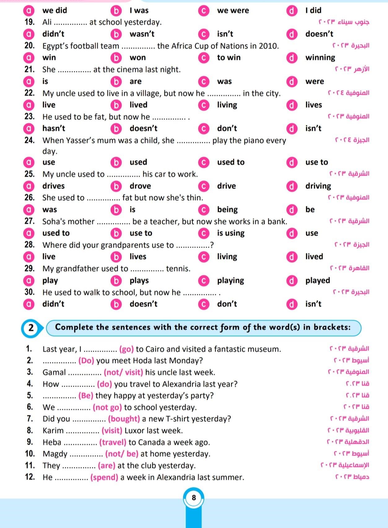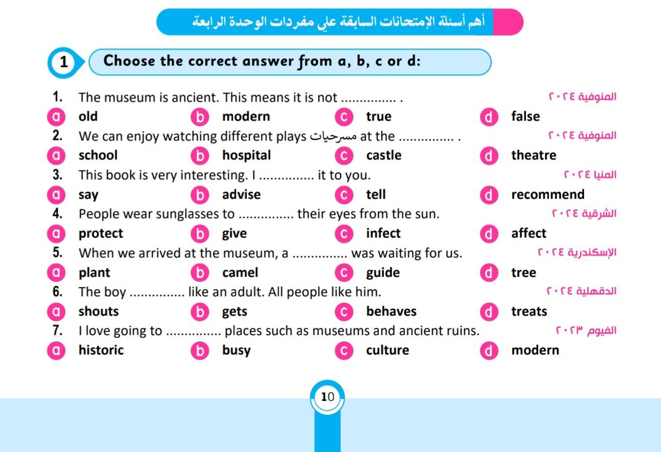 مراجعة مادة اللغة الانجليزية للصف الثاني الإعدادي