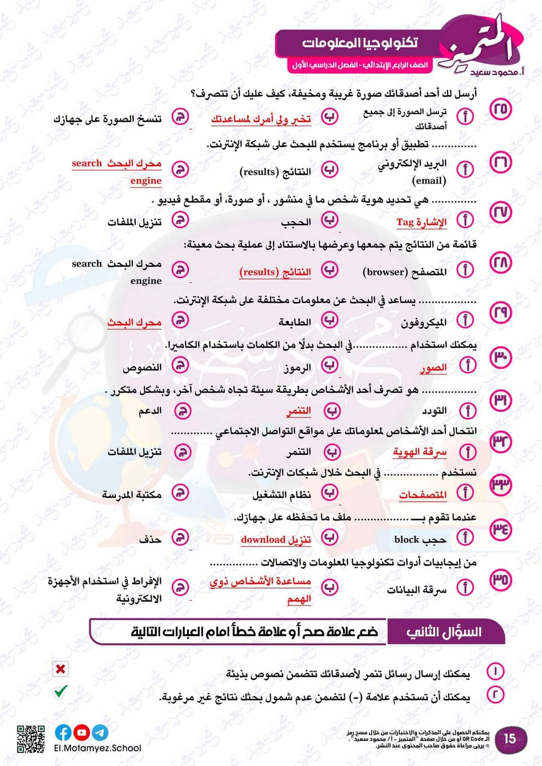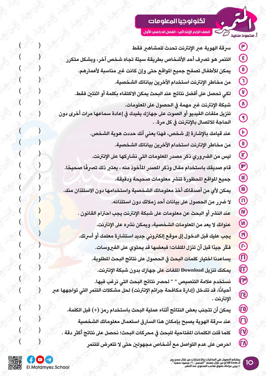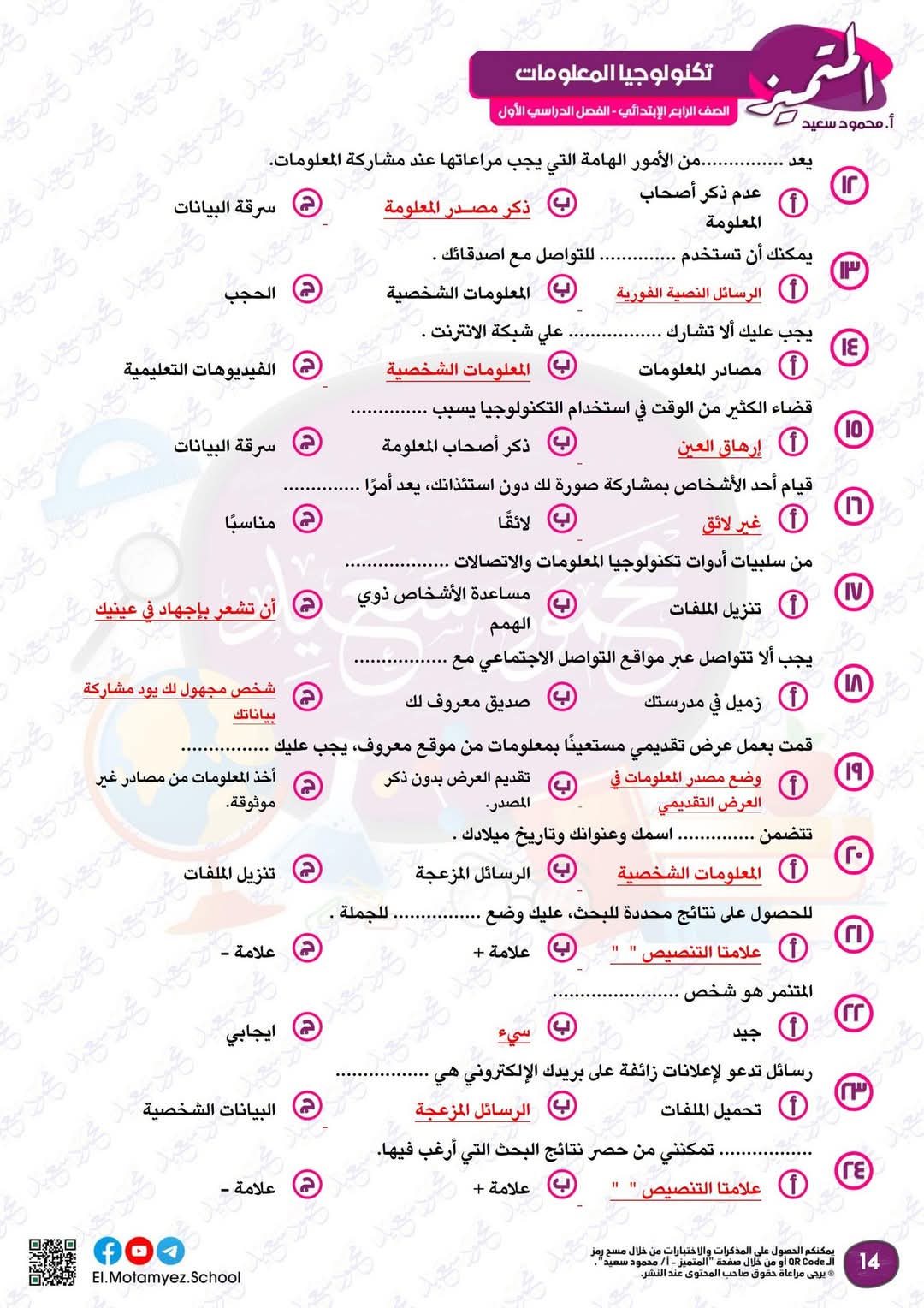 مراجعة المتميز تكنولوجيا المعلومات للصف الرابع الابتدائي 2024 بالصور