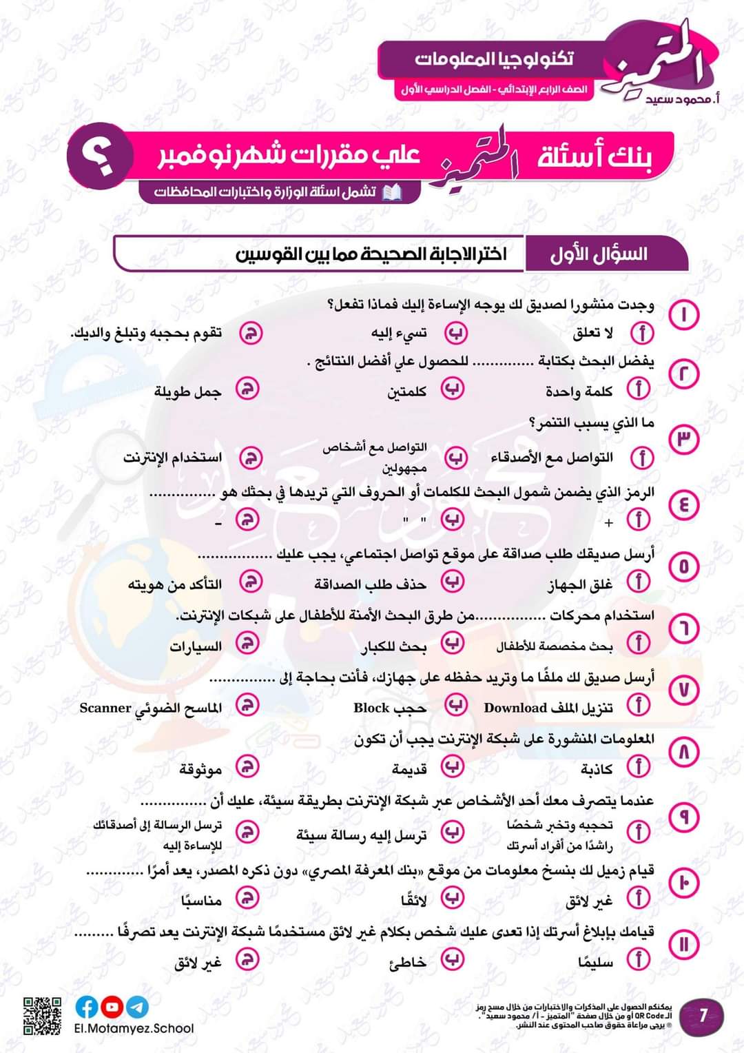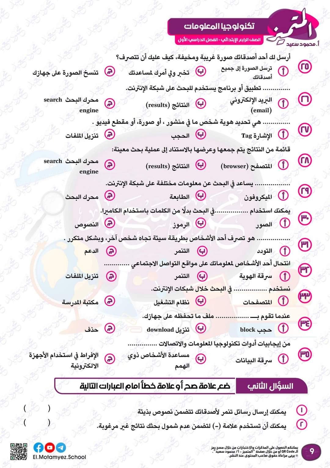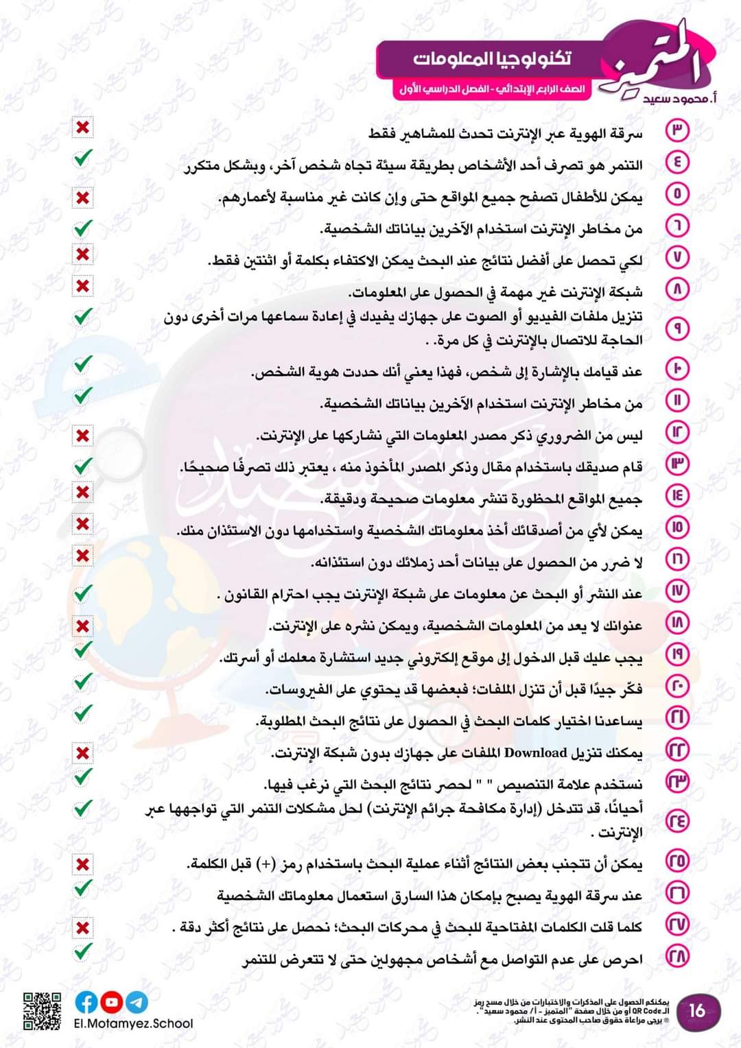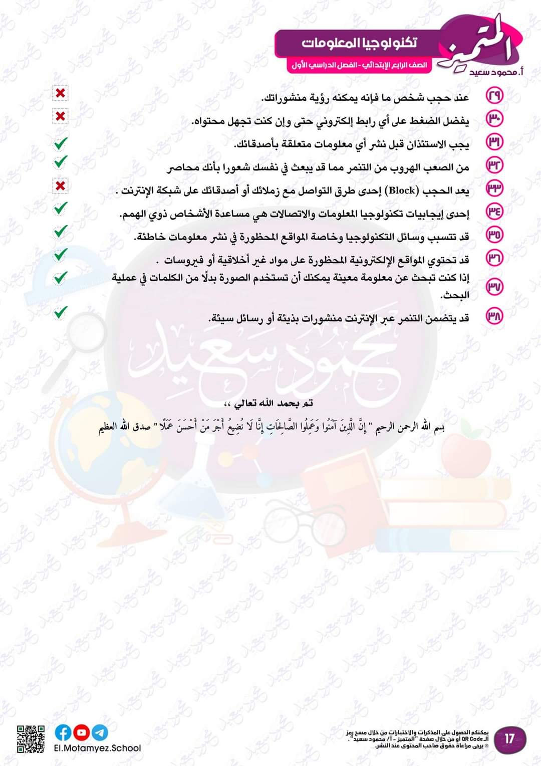 مراجعة المتميز تكنولوجيا المعلومات للصف الرابع الابتدائي 2024 بالصور