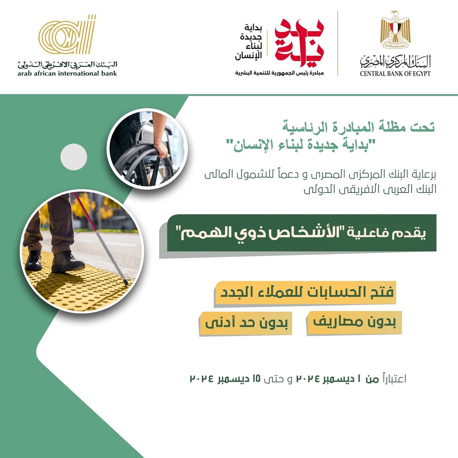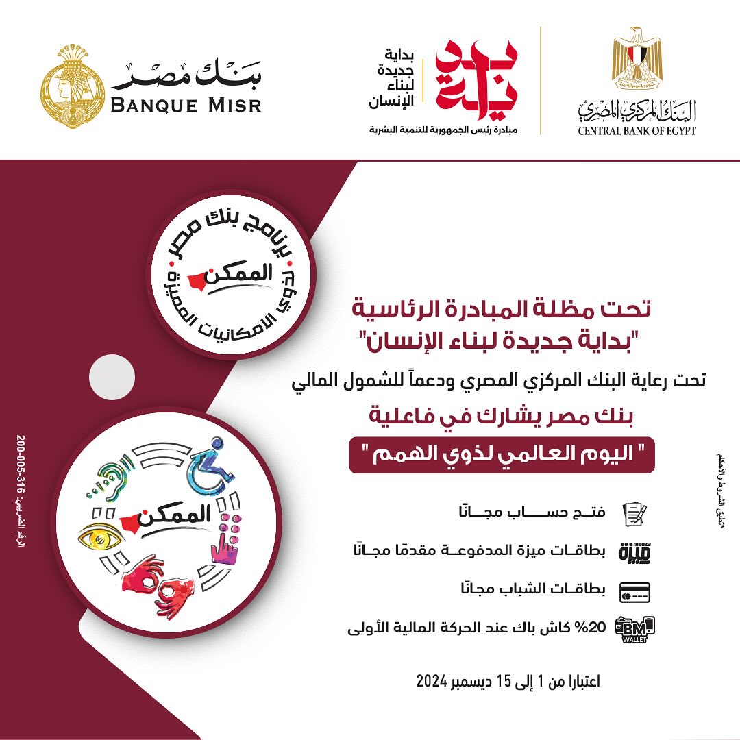 أعلنت عدد من البنوك عن إتاح فتح حسابات مجانية بدون حد أدنى بدءا الأحد 1 ديسمبر 2024، بالإضافة إلى عدد من الخدمات الأخرى، على رأسهم بنك مصر الذي قدم العديد من العروض الخاص المجانية للمواطنين، وذلك احتفالا بمناسبة الشمول المالي «اليوم العالمي لذوي الهمم»، والتي تأتي في إطار التسهيلات على المواطنين في الاستفادة من الخدمات البنكية بسهولة ويسر.