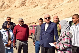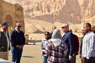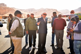 واستهل جولته بطريق وادى الملكات، حيث وجه مديرية الطرق والشركة الوطنية للمقاولات العامة والتوريدات برفع كفاءة الطريق ورصفه وتركيب بلاط انترلوك، ثم توجه للطريق المؤدى لمعبد حتشبسوت وجراج الحافلات السياحية أمام المعبد.