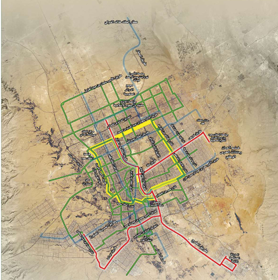 - مسار القطار البنفسجي على محور طريق عبد الرحمن بن عوف – طريق الشيخ حسن بن حسين.