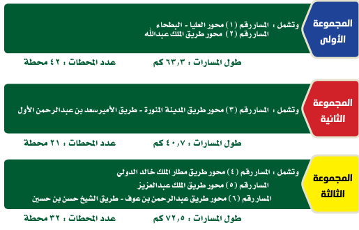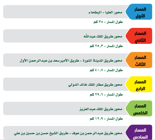 - مسار القطار البرتقالي على محور طريق المدينة المنورة - طريق الأمير سعد بن عبد الرحمن الأول.