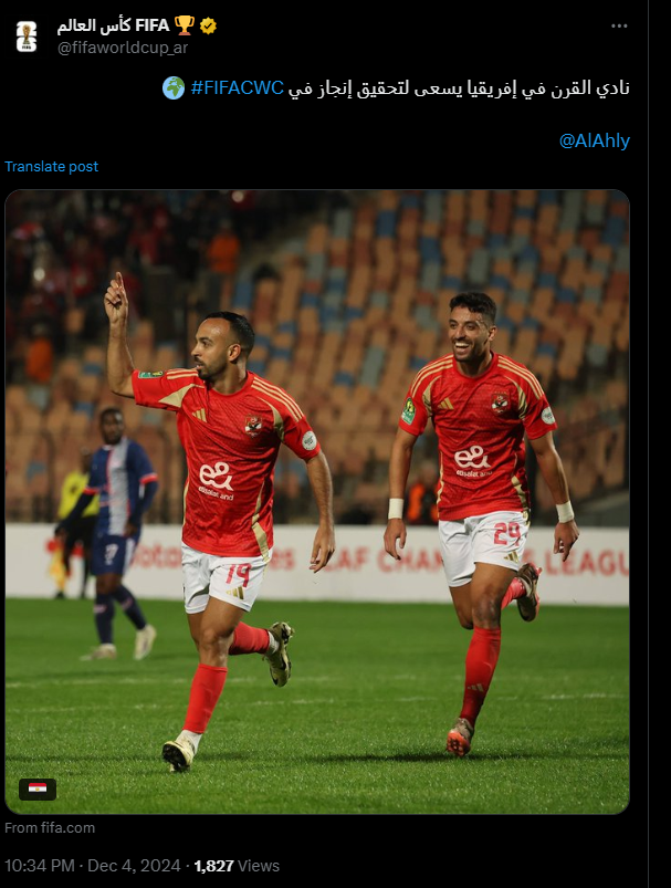 وكتب فيفا في تقريره عبر حسابه الرسمي: الأهلي زعيم إفريقيا يطمح لصناعة التاريخ في كأس العالم للأندية 2025.