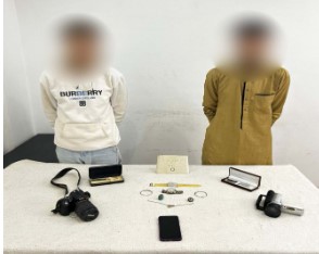 تمكنت الأجهزة الأمنية بوزارة الداخلية من ضبط عاملين لارتكابهما واقعة سرقة 2 كاميرا تصوير، 2 ساعة، هاتف محمول، وبعض الإكسسوارات والمصوغات الذهبية من داخل فيلا بدائرة قسم شرطة ثان الشيخ زايد، وأرشدا عن كافة المسروقات المستولى عليها.