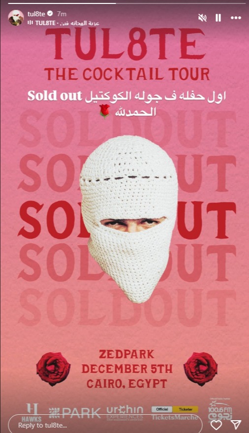 ونشر توو ليت عبر حسابه على موقع تبادل الصور والفيديوهات إنستجرام، عبر خاصية الاستوري، وعلق: أول حفلة في الكوكتيل sold out الحمد لله.