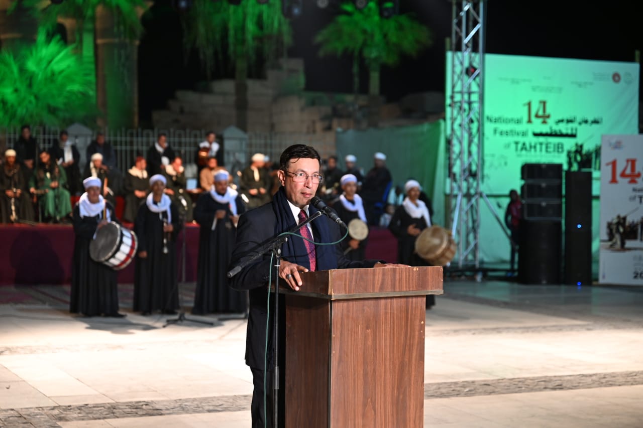 وأضاف ناصف خلال افتتاح مهرجان التحطيب بالأقصر أن الدورة 14 من المهرجان تأتي تحت رعاية واهتمام الدكتور أحمد فؤاد هنو، وزير الثقافة، بكل ما تحمله من مفردات من أجل حفظ وصون التراث المصري.وفي ختام حديثه طلب من الحضور الترحم على الراحل الفنان عبد الرحمن الشافعي مؤسس هذا المهرجان.