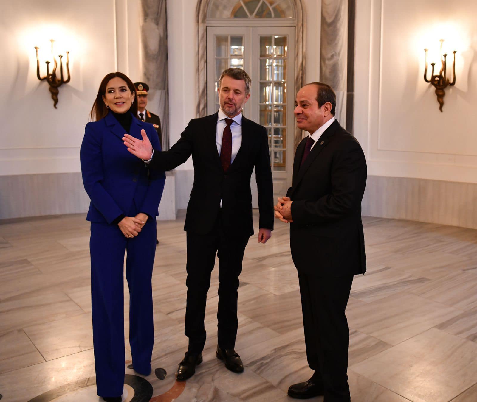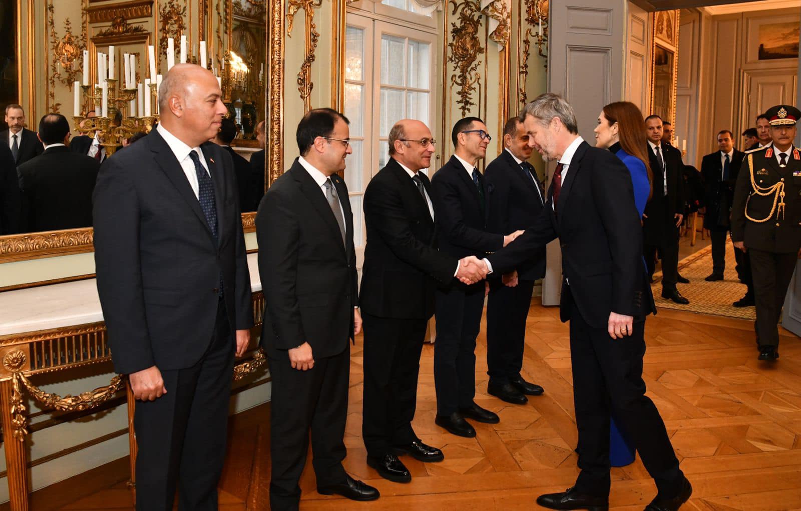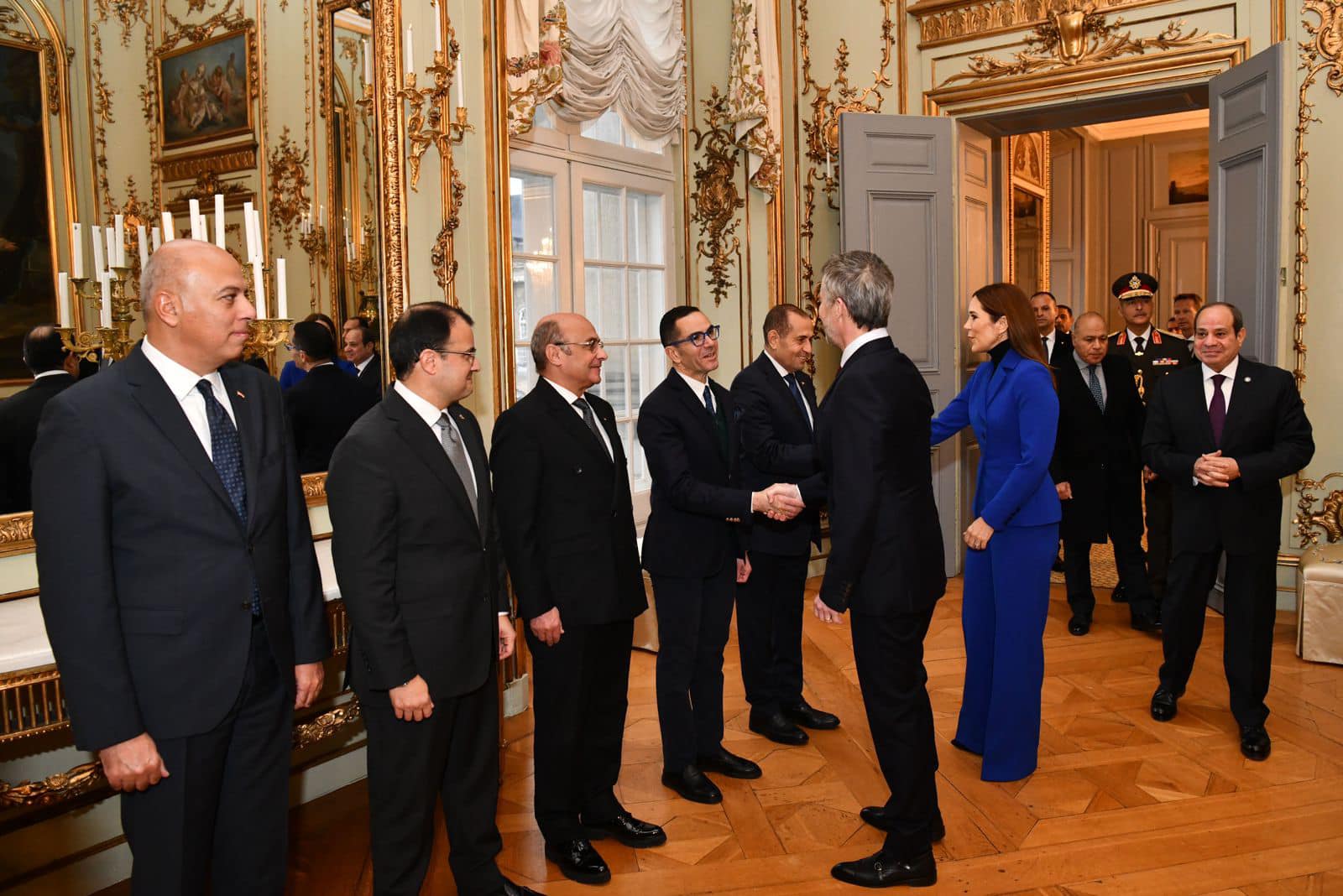كما وقع الرئيس السيسي في سجل كبار الزوار بالقصر الملكي الدنماركي.