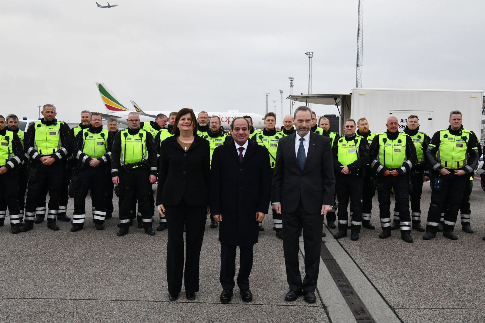 وقال السفير محمد الشناوي المتحدث الرسمي باسم رئاسة الجمهورية، إنه كان في انتظار الرئيس في المطار عدد من المسؤولين الدنماركيين، مشيرًا إلى أن الرئيس استجاب لطلبهم بالتقاط صور تذكارية معه اعتزازًا بالزيارة التاريخية له إلى كوبنهاجن، والتي تعد أول زيارة لرئيس مصري إلى مملكة الدنمارك، وقبل توجه الرئيس إلى العاصمة النرويجية أوسلو في ثاني محطات جولته الأوروبية.