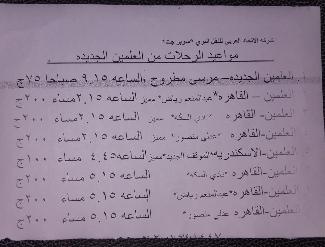 أسعار ومواعيد تحرك الأتوبيسات على خطوط مدينة العلمين الجديدة