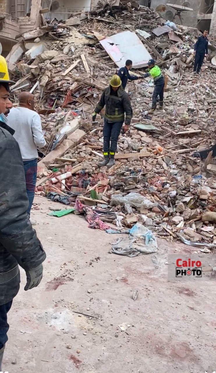 استمرار عمليات البحث عن مفقودين أسفل عقار العباسية المنهار | صور