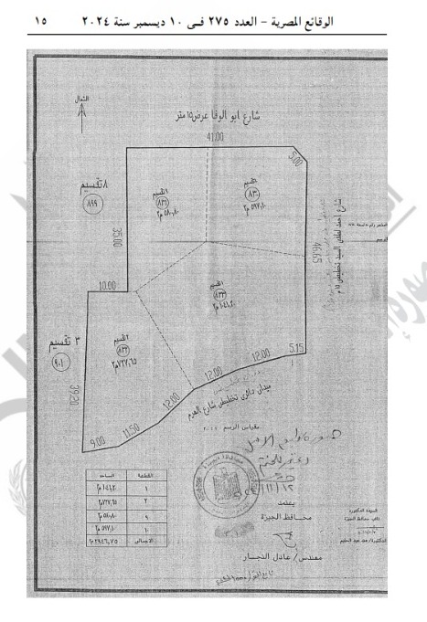 كما أصدر محافظ الجيزة، قرارًا أخر يحمل رقم 1556 لسنة 2024 بشأن اعتماد مشروع تعديل تقسيم القطعة 21 من المشروع المعتمد بالقرار رقم 1364 لسنة 2023.