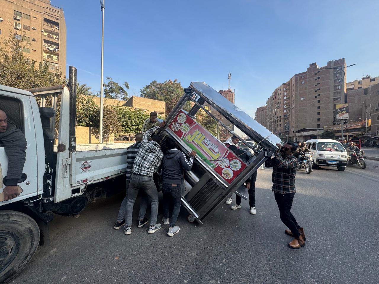 إزالة 500 مخالفة إشغال وتعديات من الباعة الجائلين والمنشآت التجارية باللبيني هرم