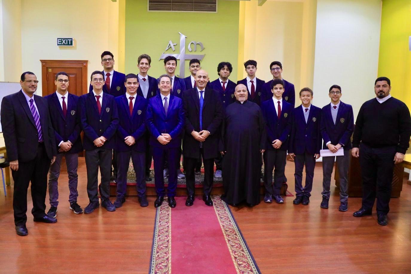 ومن جهته، رحب الأب رومانى أمين مدير المدرسة بالحضور، مشيرًا إلى أن مدرسة العائلة المقدسة المعروفة أيضًا بإسم مدرسة "الجزويت" تهدف لتنشئة أبنائها تنشئة متكاملة تمكنهم من خدمة مجتمعهم وانفتاحهم على العالم المحيط بهم ثقافيًا وعلميًا وإنسانيًا، مشيرًا إلى أن المدرسة تعد واحدة من بين 3730 مدرسة يدرس فيها مليونان ونصف مليون طالب من مختلف أنحاء العالم، فضلًا عن 189 جامعة ومعهد متخصص عالميًا.