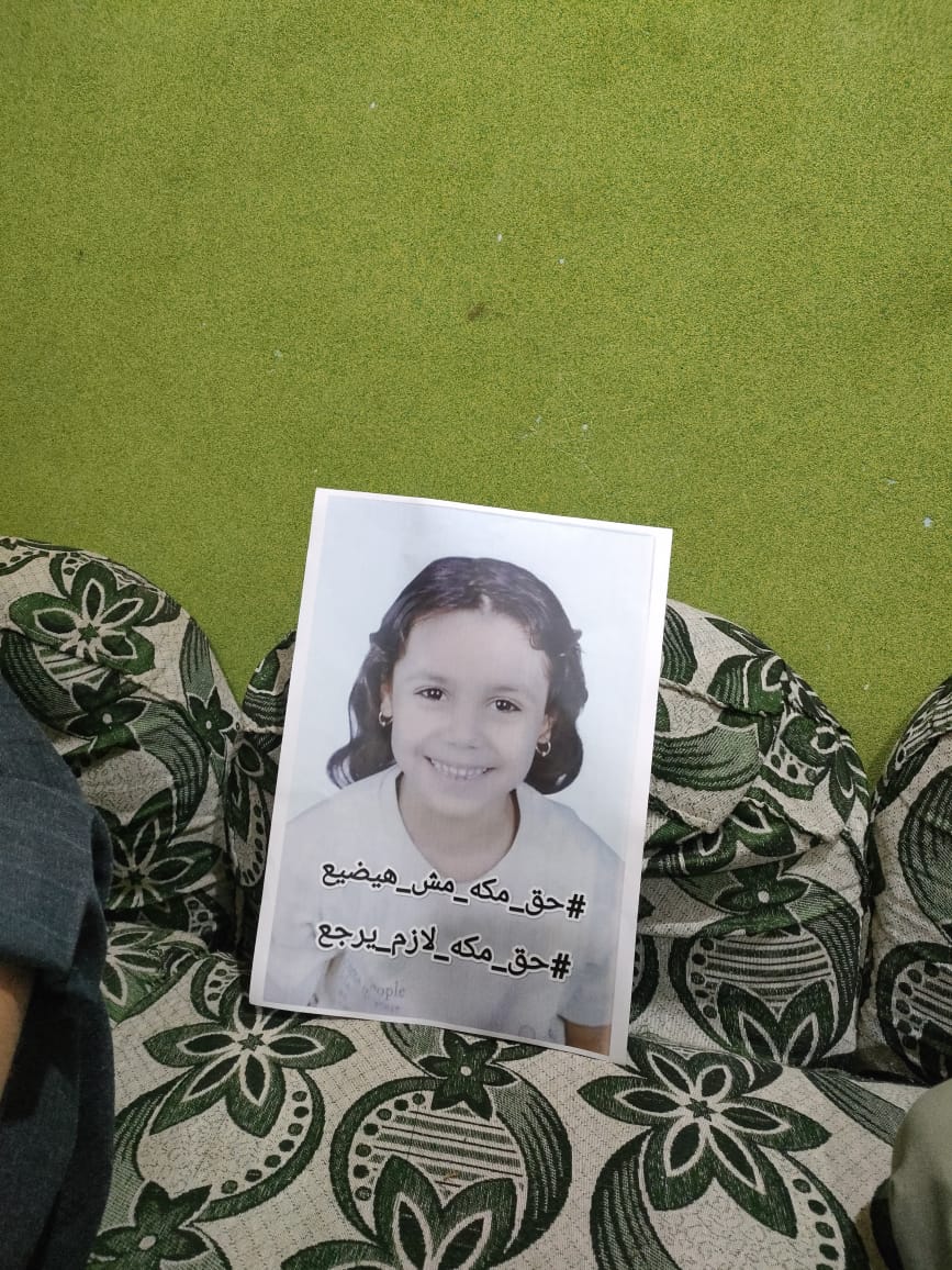 بعد نزول الطفلة مكة إلى الشارع للعب مع أولاد جيرانها لم تمر دقائق واختفت مكة ولم يكن لها أثر في شوارع القرية، خرجت والدة الطفلة للبحث عنها لكنها لم تجدها.