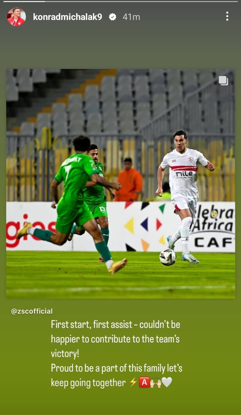 وقال كونراد ميشالاك عبر حسابه الرسمي على إنستجرام: البداية الأولى، التمريرة الحاسمة الأولى، فخور بأن أكون جزءًا من هذه العائلة، فلنواصل العمل معًا.
