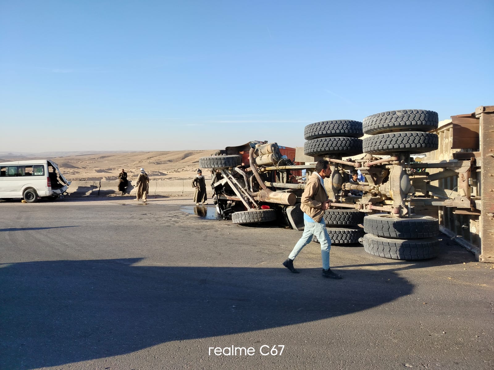 إصابة 8 أشخاص في حادث تصادم ميكروباص مع سيارة نقل أعلى الطريق الإقليمي