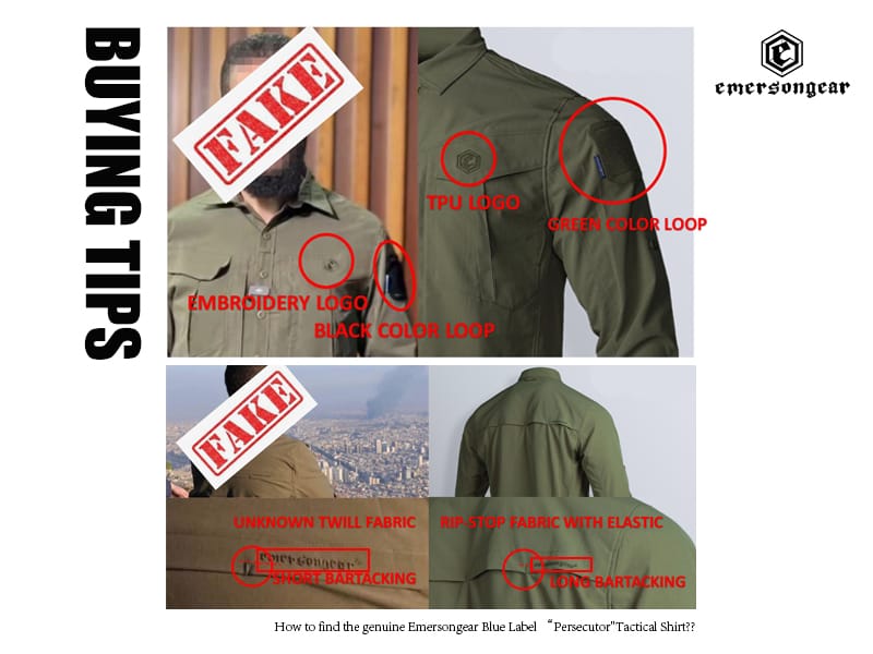 وحرصت الشركة الصينية على إرسال صورة تقريبية وتوضيحية تثبت صحة قولهم، وأن النموذج الذي ارتداه الجولاني؛ هو قميص مقلد لمنتجاتهم، موضحة من خلال الصور الاختلافات الجوهرية بينهما، وهو ما تم تأكيده لنا في الصورة الموضحة.