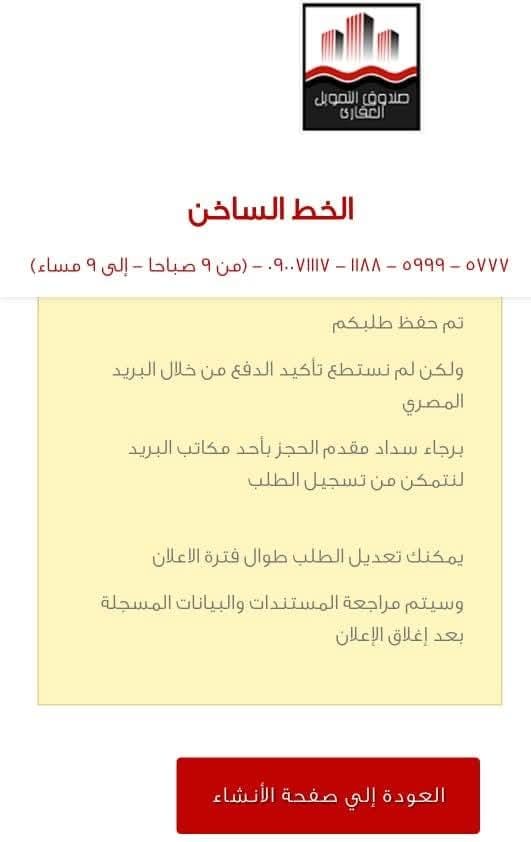 يتساءل عدد من المواطنين المتقدمين على شقق سكن لكل المصريين 5، عن سبب ظهور رسالة تم حفظ طلبكم لكن لم نستطع تأكيد الدفع من خلال مكاتب البريد، وتأتي بعد استكمال ورفع الأوراق المطلوبة وملء البيانات.