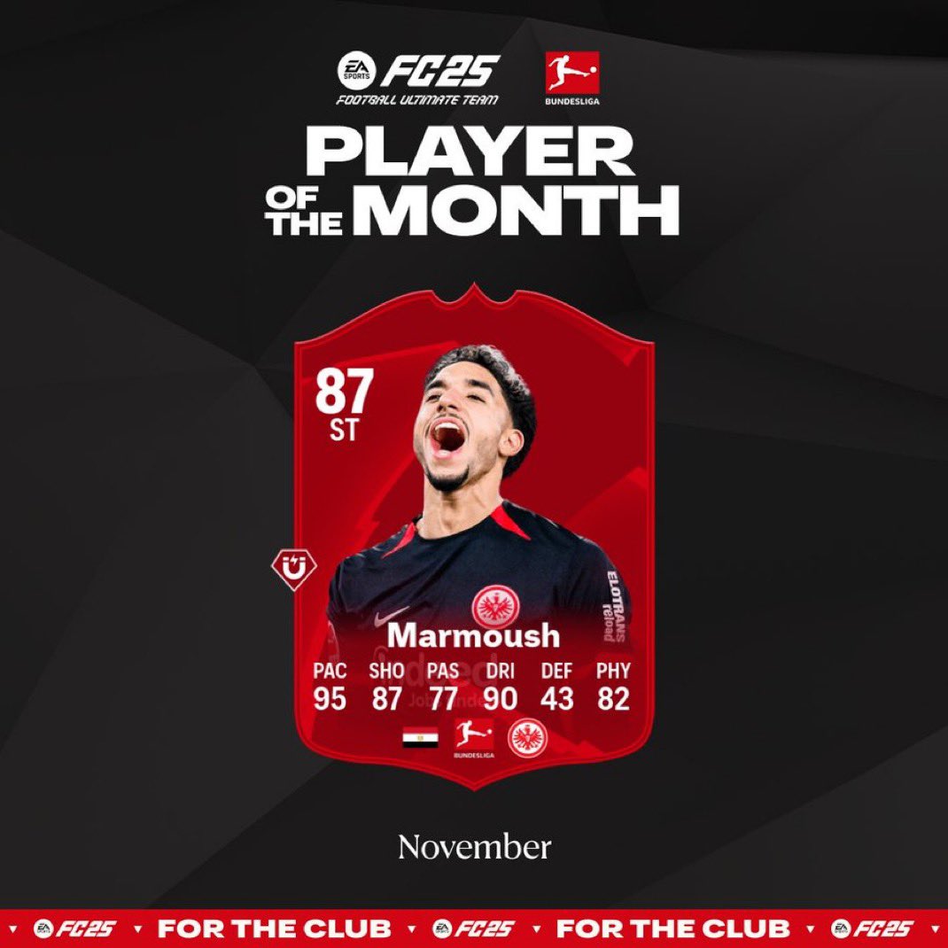 ونشر الموقع الرسمي للدوري الألماني مقطعًا فيديو، حيث أعلن من خلال هذا المقطع فوز النجم المصري عمر مرموش بجائزة أفضل لاعب في شهر نوفمبر بالدوري الألماني.