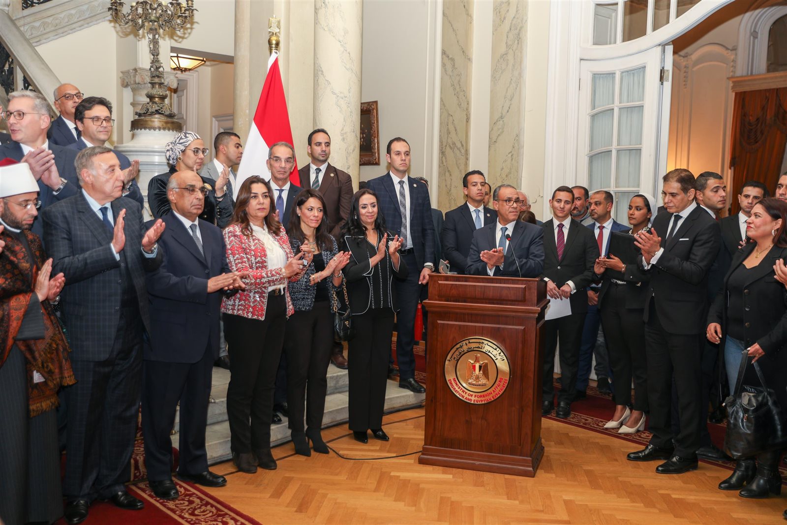 جاء ذلك بحضور الدكتور بدر عبد العاطي وزير الخارجية، والمستشار بولس فهمي رئيس المحكمة الدستورية العليا والدكتور عمرو طلعت وزير الاتصالات وتكنولوجيا المعلومات، كما شهد الاحتفالية عدد من الوزراء وكبار المسؤولين وأعضاء السلك الدبلوماسي بالقاهرة وزراء الخارجية السابقين ونواب من مجلسي النواب والشيوخ.