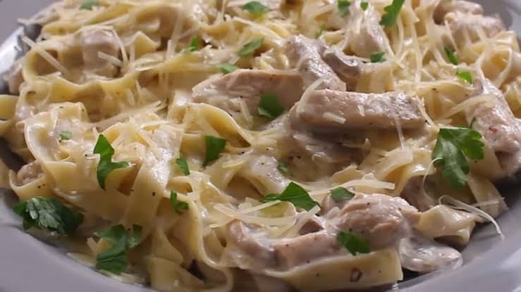 - وأخيرا صفي المكرونة الفوتشيني من ماء السلق وضعيها في صوص الكريمة مع صدور الدجاج والمشروم وقلبيها جيدا واتركيها على النار لمدة 5 دقائق فقط.