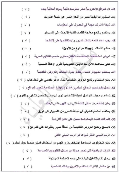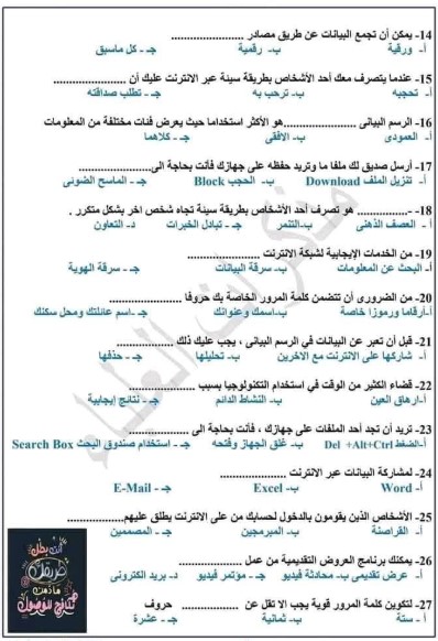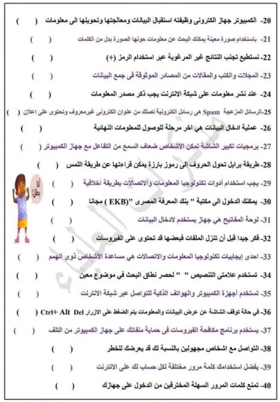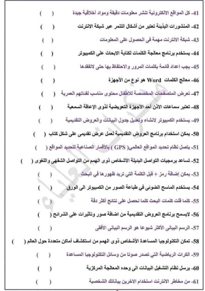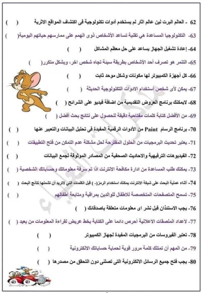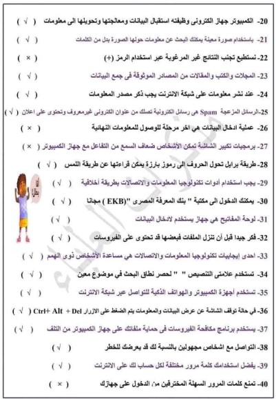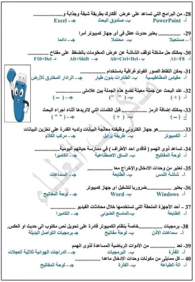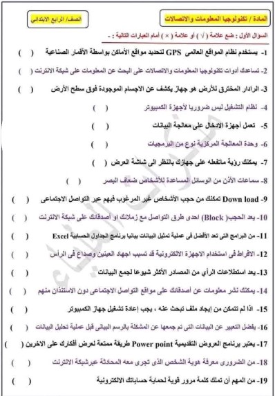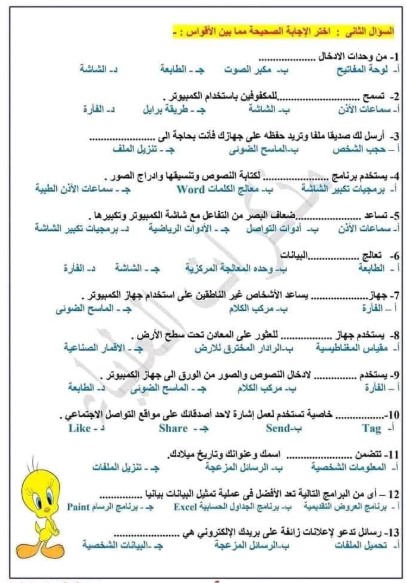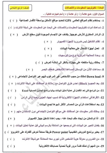 نماذج امتحانات الصف الرابع الابتدائي 2025 تكنولوجيا المعلومات