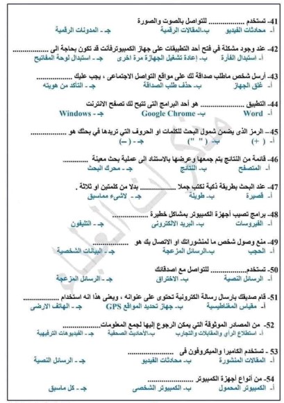 ونبدأ نماذج امتحانات الصف الرابع الابتدائي 2025 تكنولوجيا المعلومات كمادة أساسية تضاف للمجموع فيما يلي: