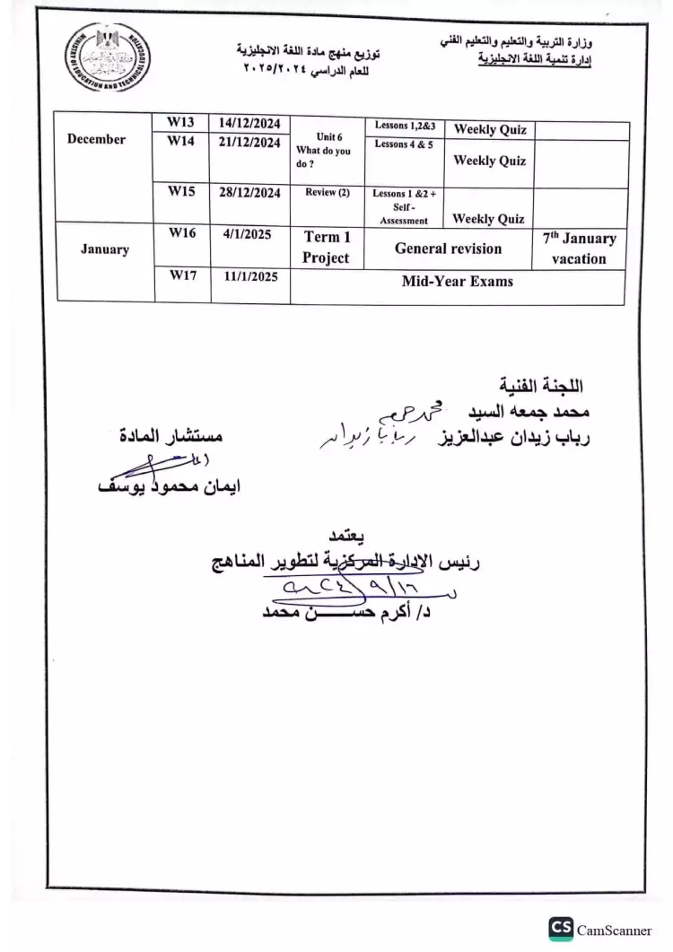 - الأسبوع العاشر (23 نوفمبر 2024): الوحدة الخامسة والدروس الأولى والثانية والثالثة.