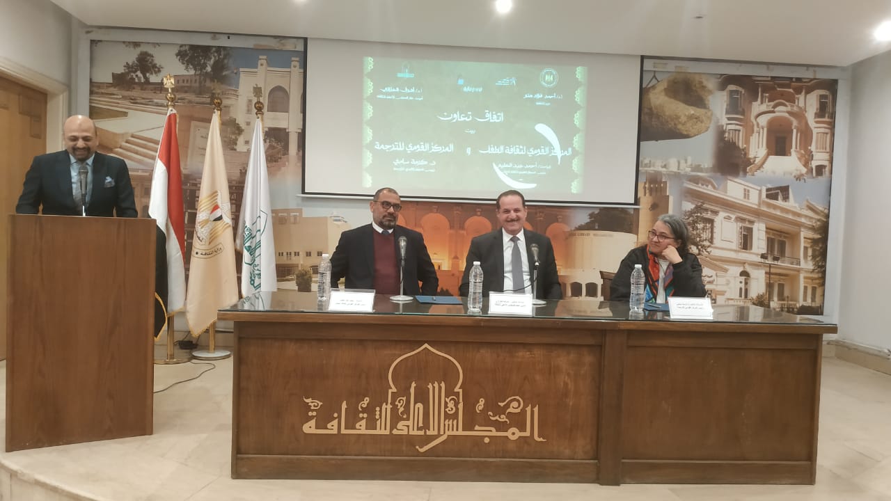 أقام المجلس الأعلى للثقافة، حفل توقيع بروتوكول التعاون بين المركز القومي لثقافة الطفل التابع للمجلس، والمركز القومي للترجمة، اليوم الثلاثاء، في قاعة المجلس، بحضور الدكتور أشرف العزازي أمين عام المجلس، والباحث أحمد عبد العليم رئيس القومي للطفل والدكتورة كرمة سامي رئيس القومي للترجمة.