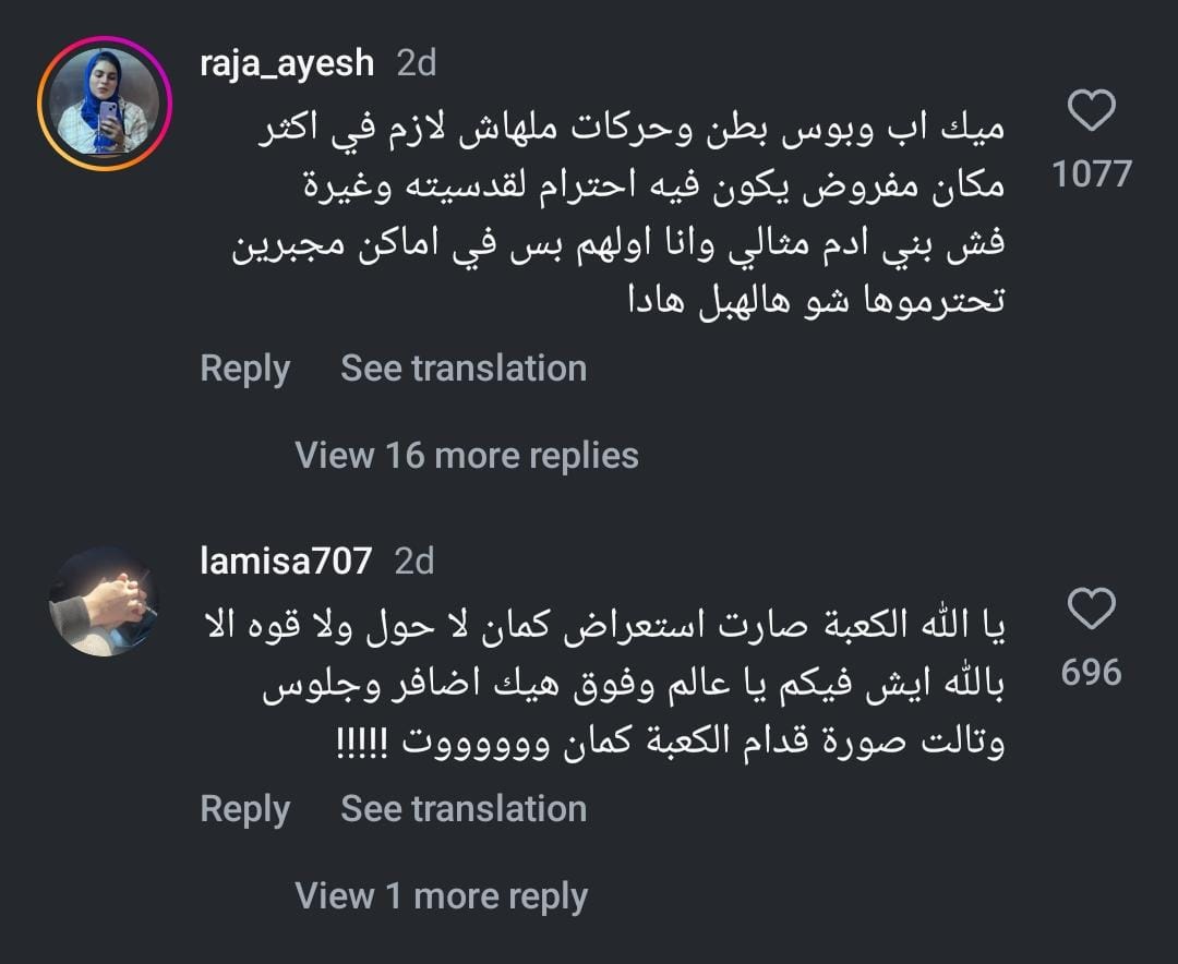 ووصف عدد كبير من المتابعين الصورة بأنها تجاوز وانتهاك لقدسية المكان، معتبرين أن ما حدث لا يتناسب مع حرمة الكعبة المشرفة، وطالب البعض بضرورة احترام الأماكن المقدسة وعدم استغلالها لتحقيق شهرة أو لفت الأنظار.