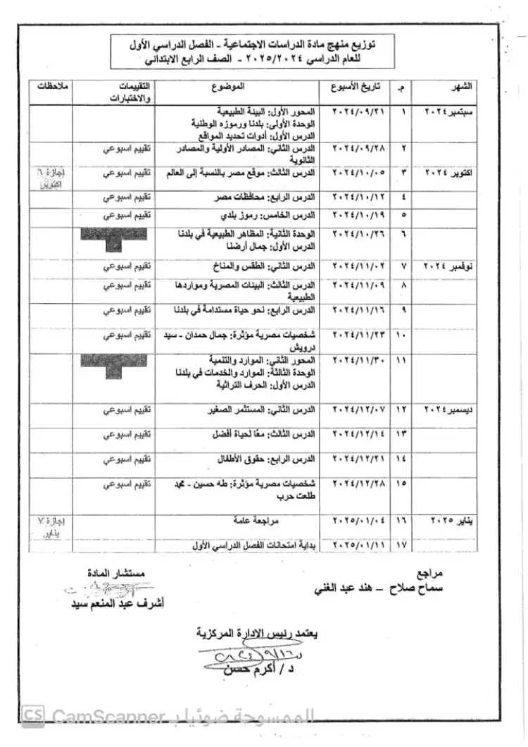 منهج الصف الرابع الابتدائي 2024-2025 الدراسات الاجتماعية