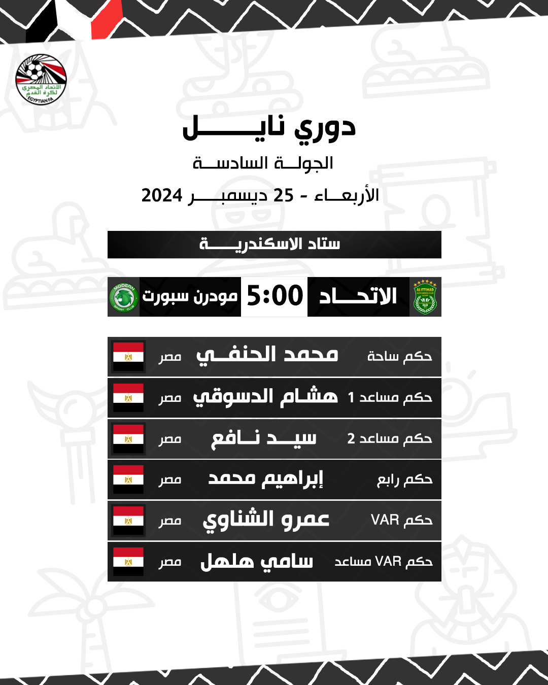 حكام مباراة الاتحاد ومودرن سبورت