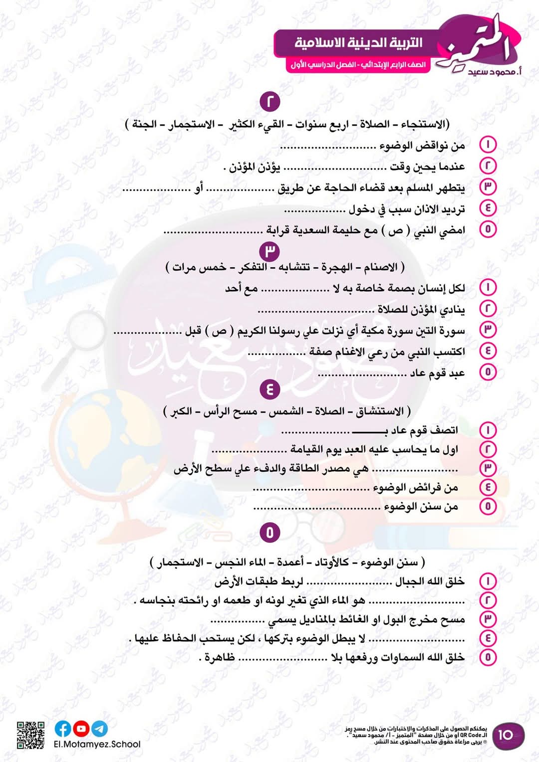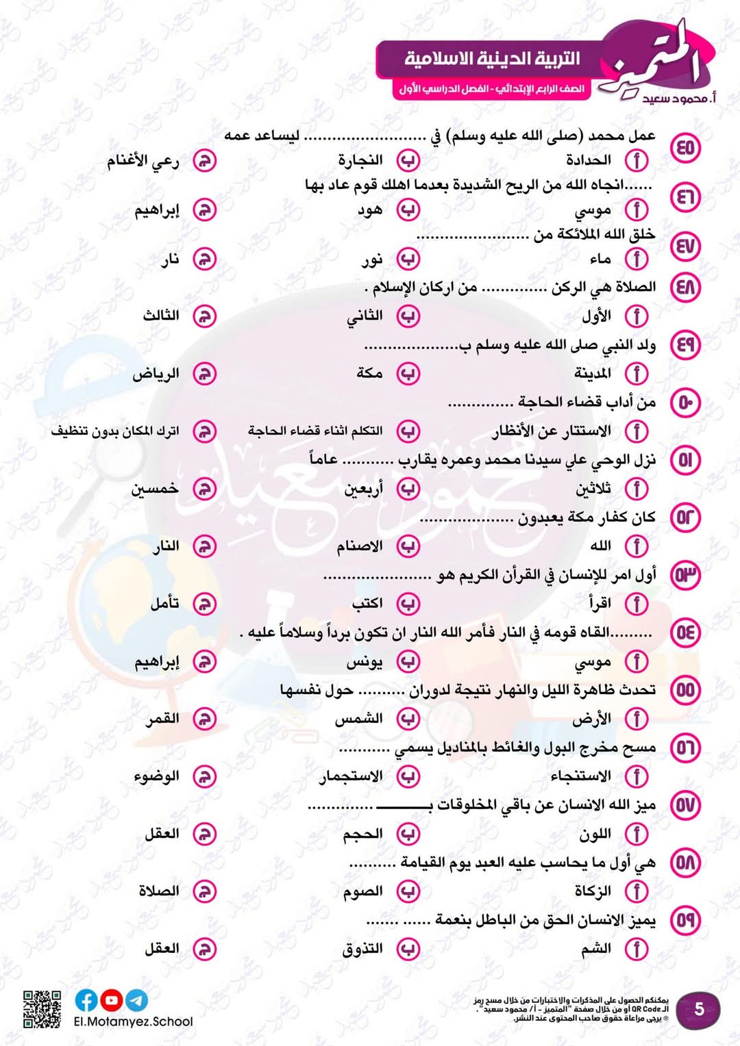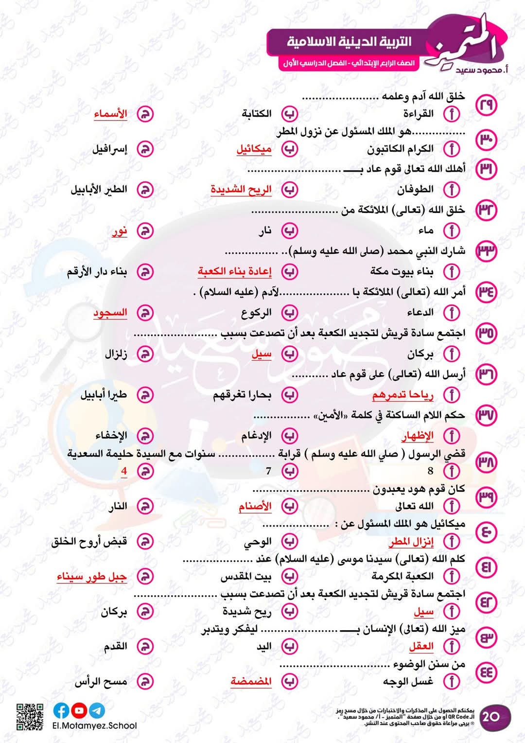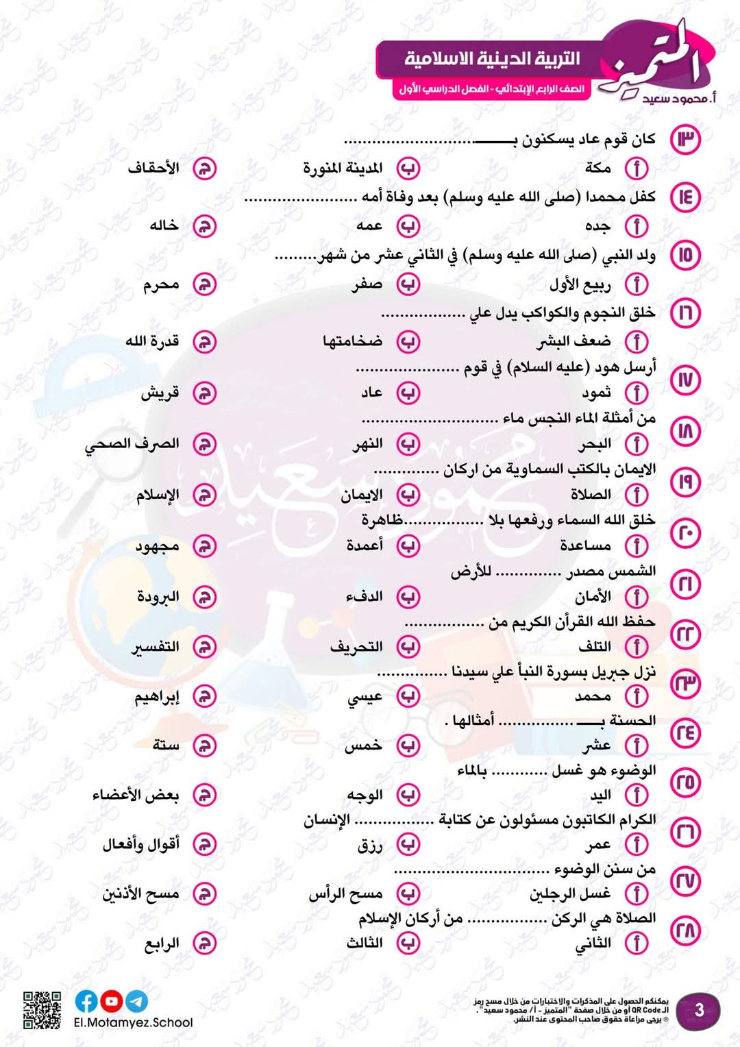 تحميل مراجعة المتميز الصف الرابع الابتدائي 2025 التربية الدينية pdf