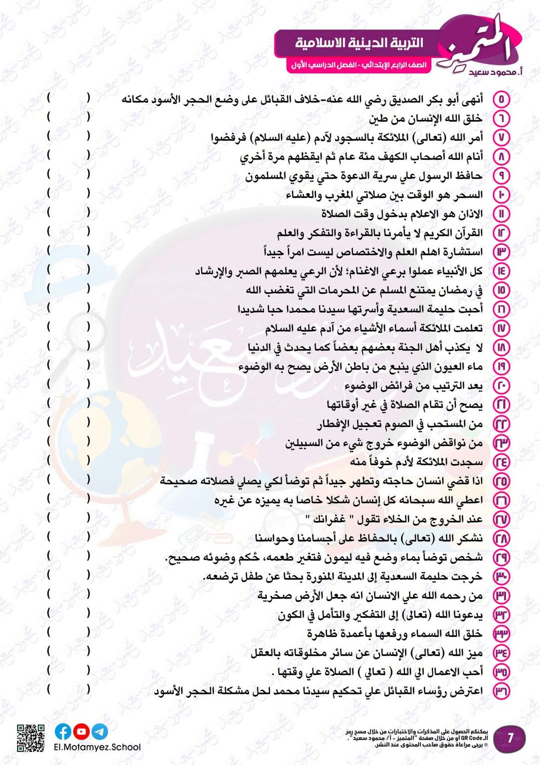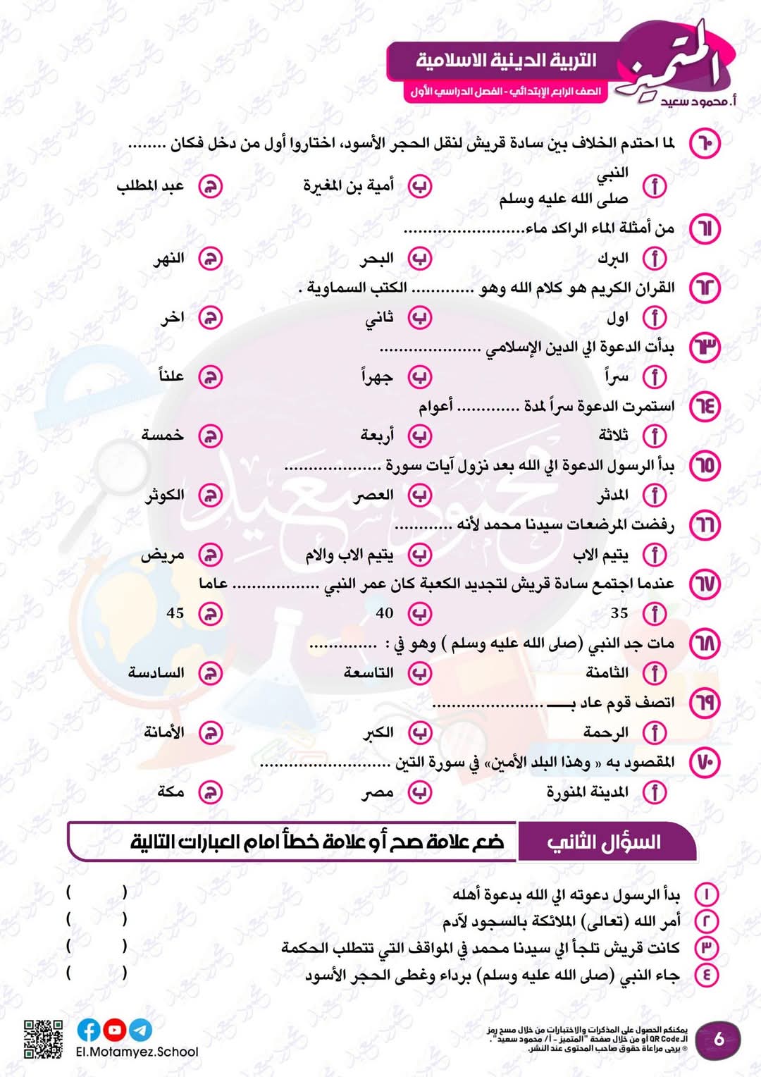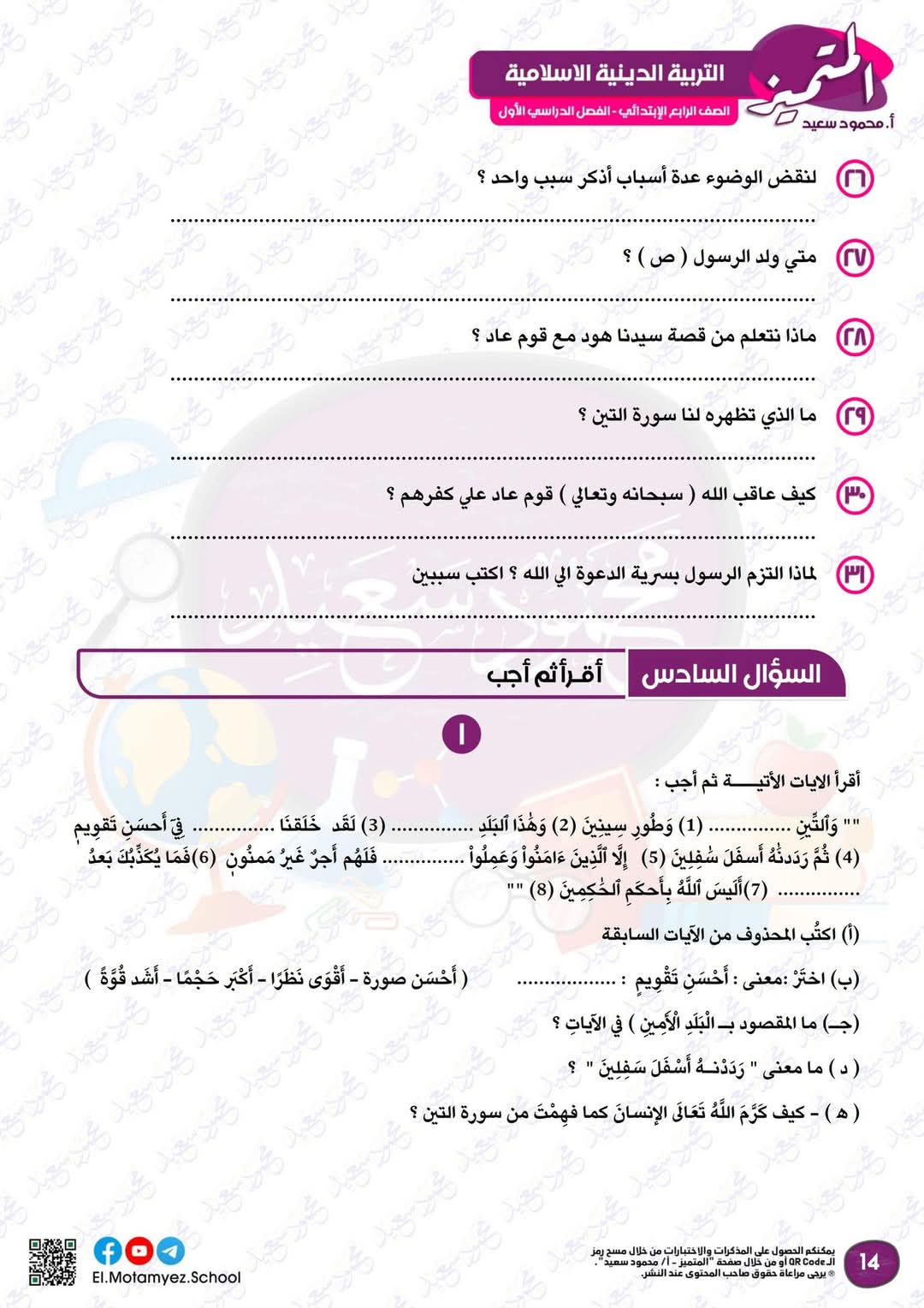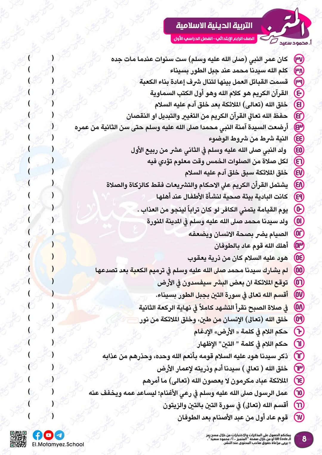 تحميل مراجعة المتميز الصف الرابع الابتدائي 2025 التربية الدينية pdf