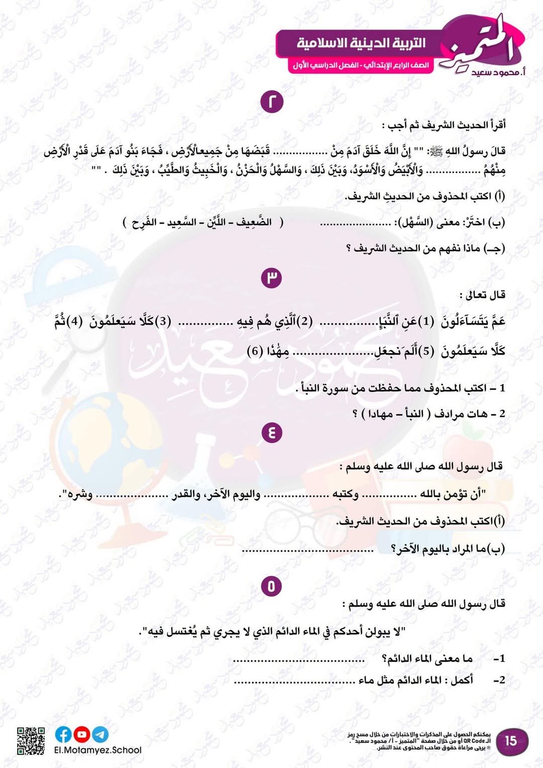 نماذج امتحانات الصف الرابع الابتدائي 2025 التربية الدينية.. حمل مراجعة المتميز الآن