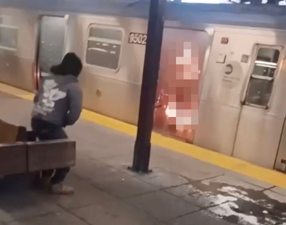 رجل يشعل النار في امرأة بمترو الأنفاق في أمريكا