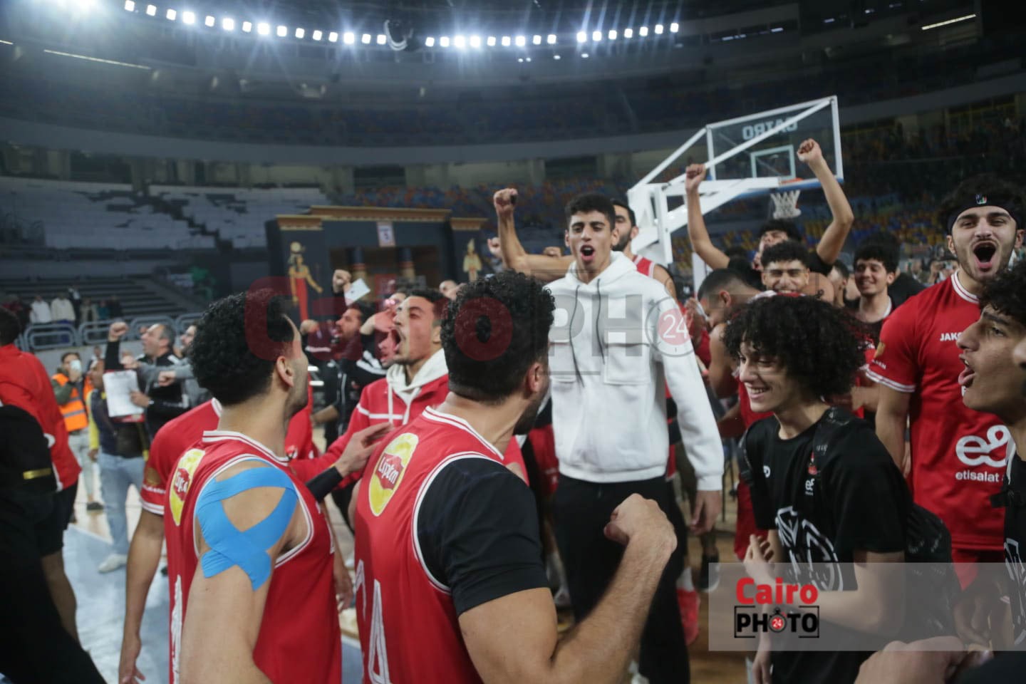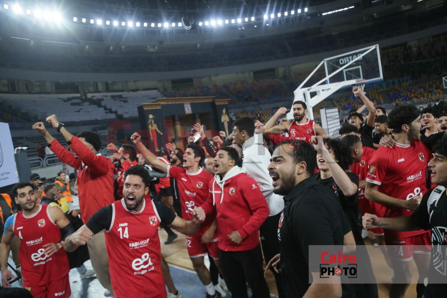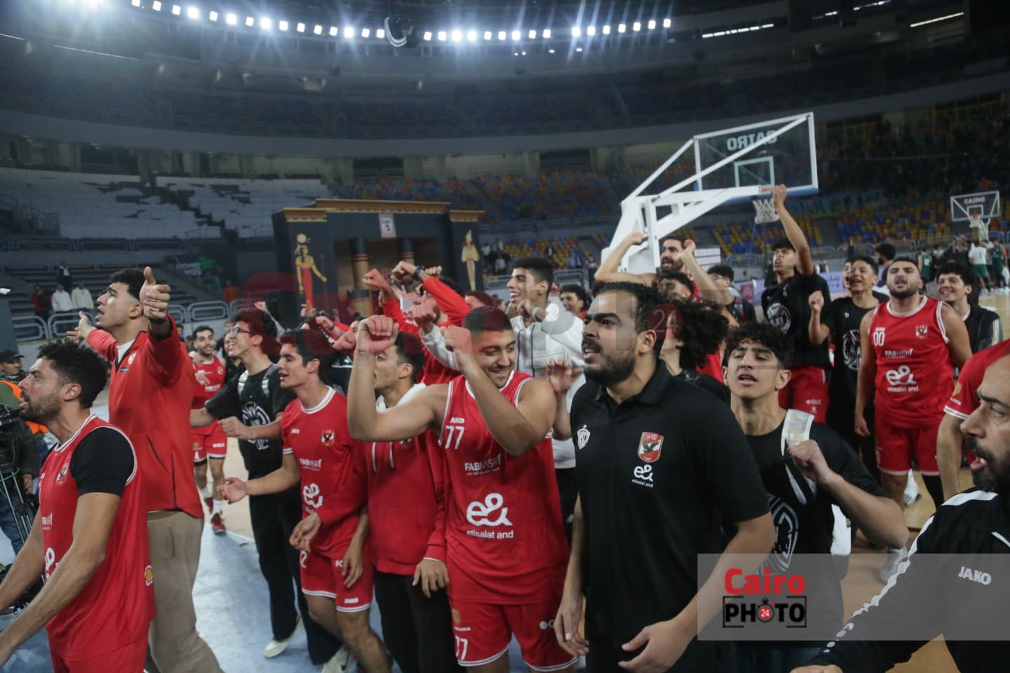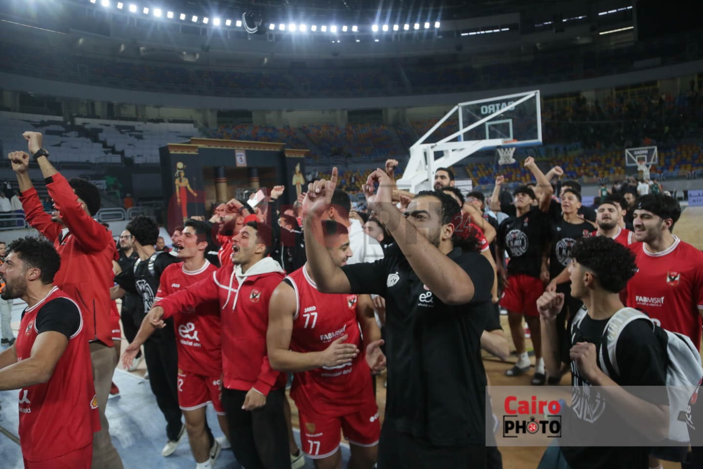 احتفالات لاعبي الأهلي مع الجمهور عقب التتويج بدوري المرتبط لكرة السلة