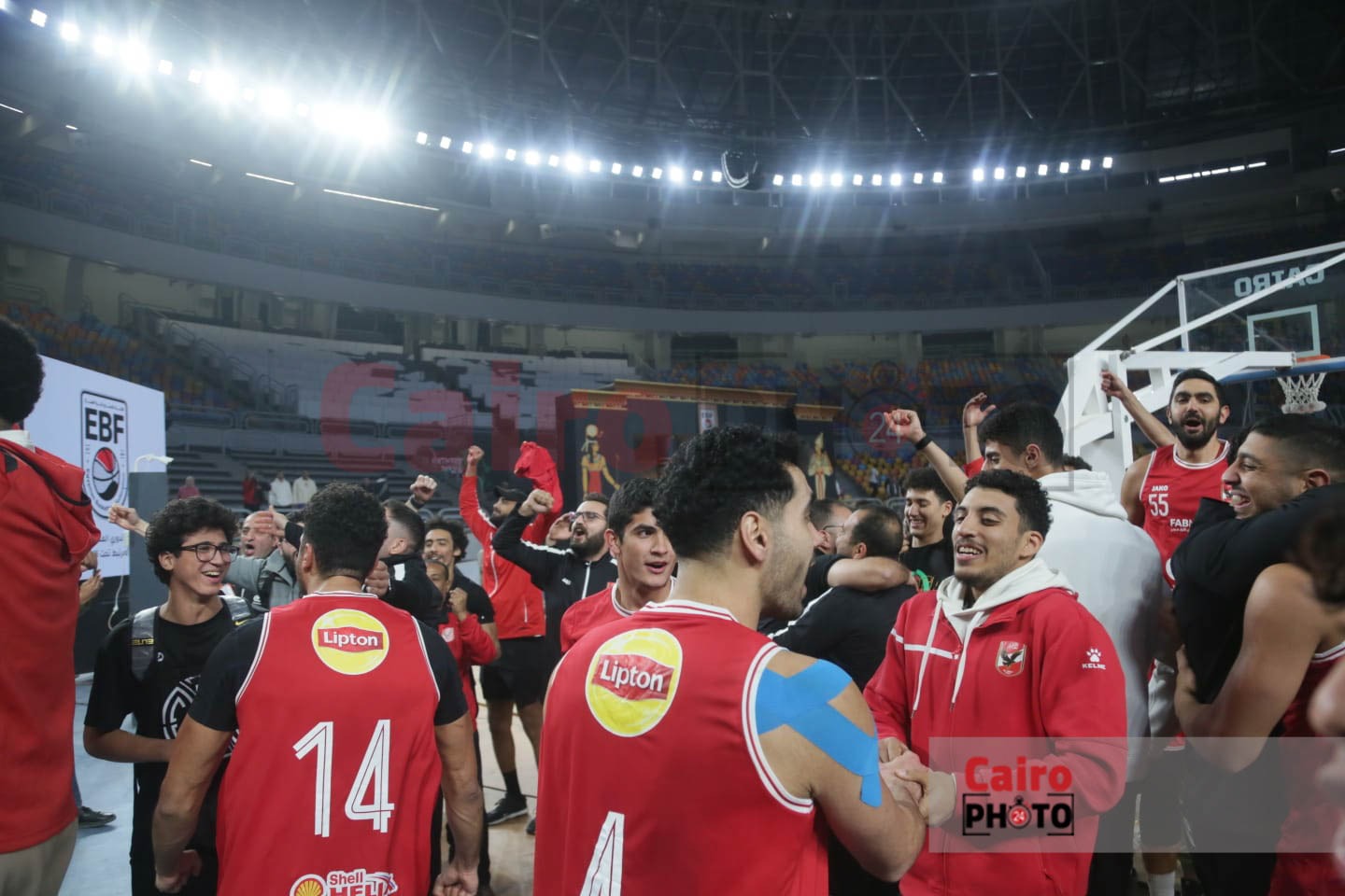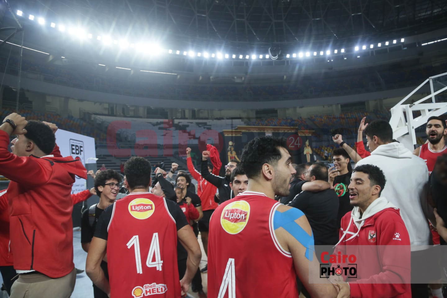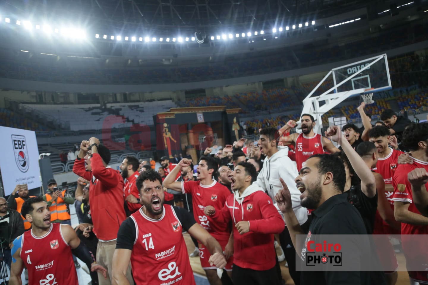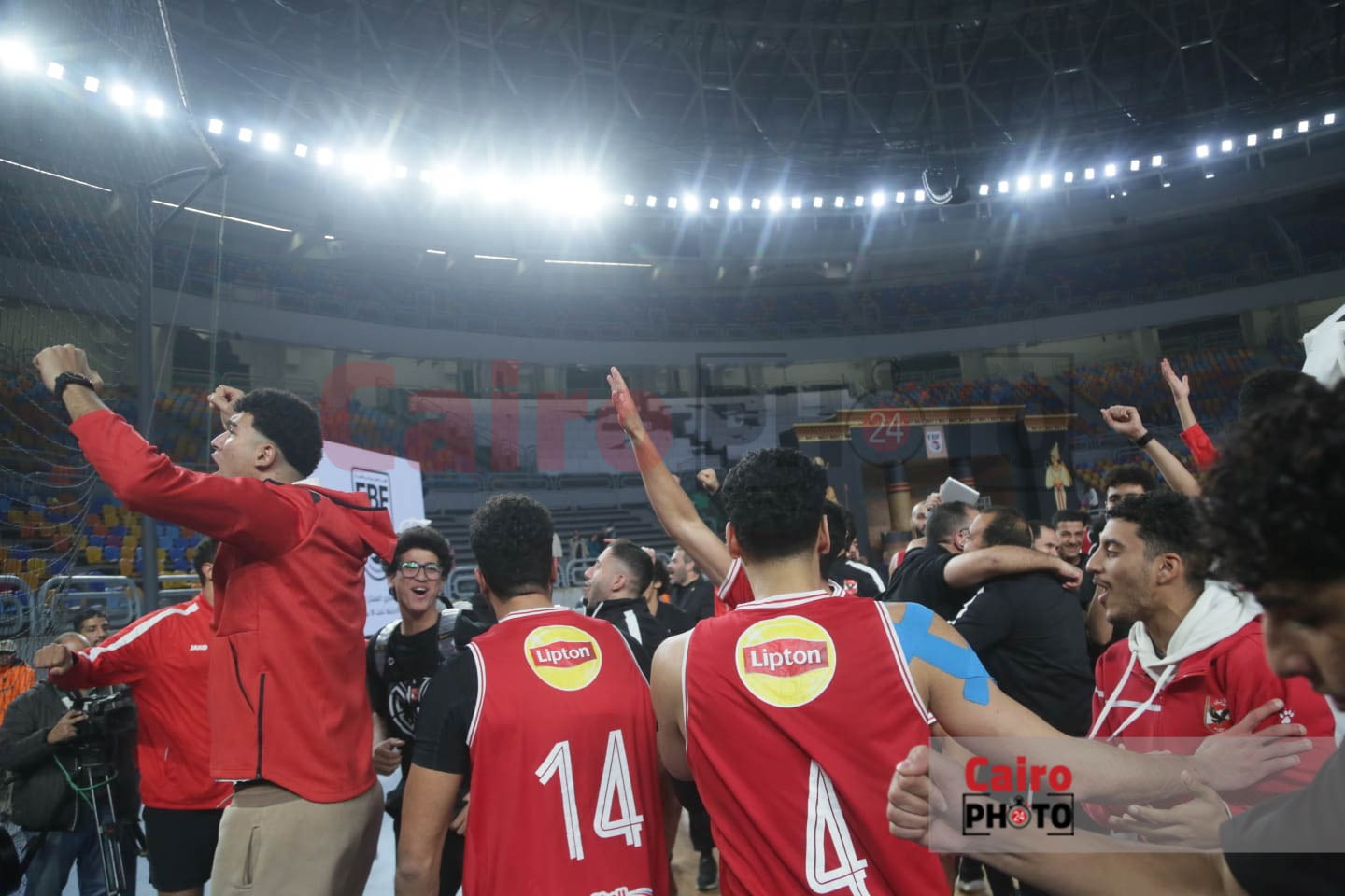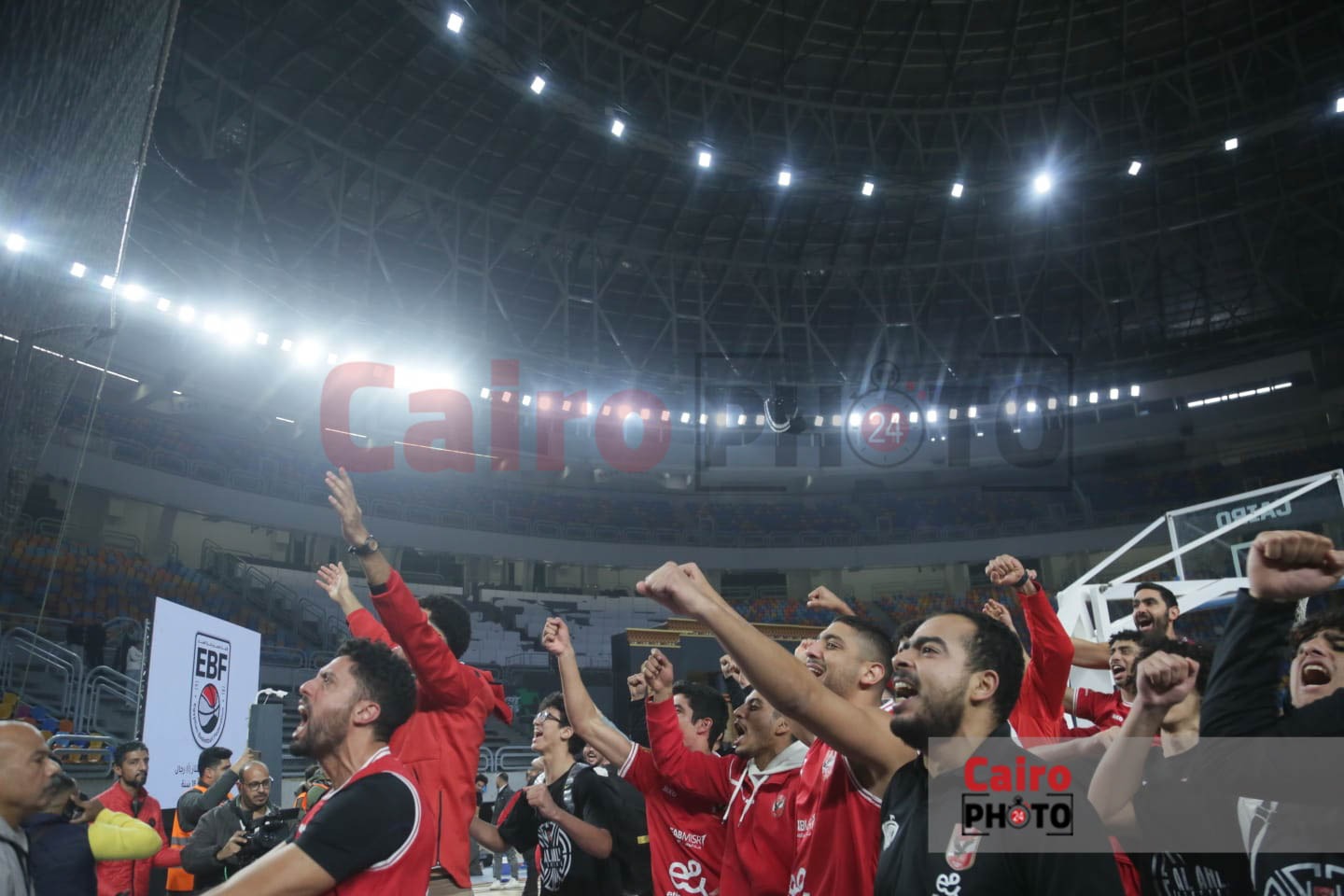 احتفالات لاعبي الأهلي مع الجمهور عقب التتويج بدوري المرتبط لكرة السلة