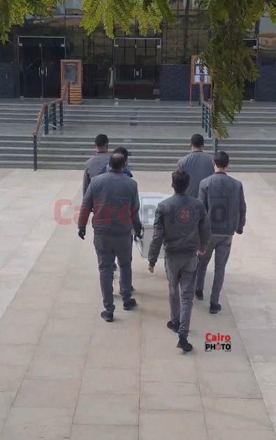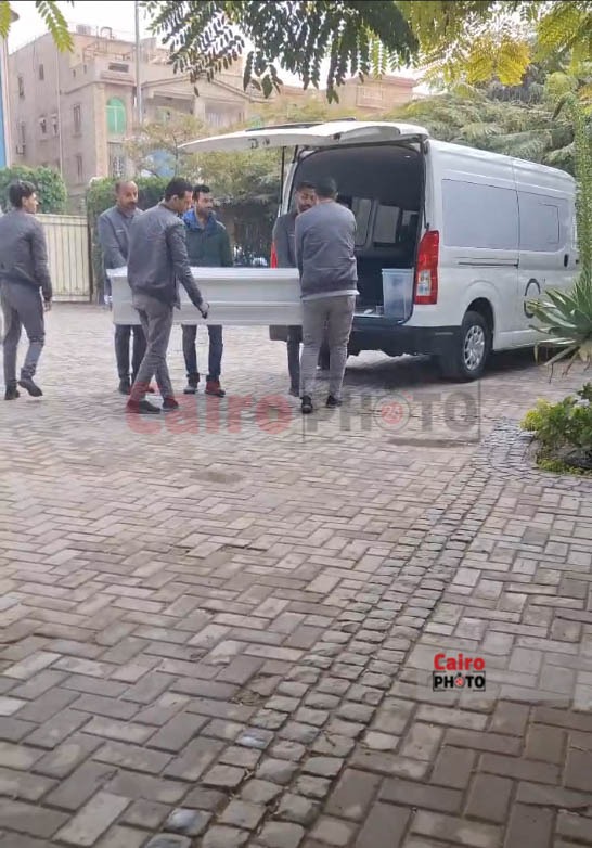 وصول جثمان زوج نشوى مصطفى لأداء صلاة الجنازة عليه بمسجد حسن الشربتلي