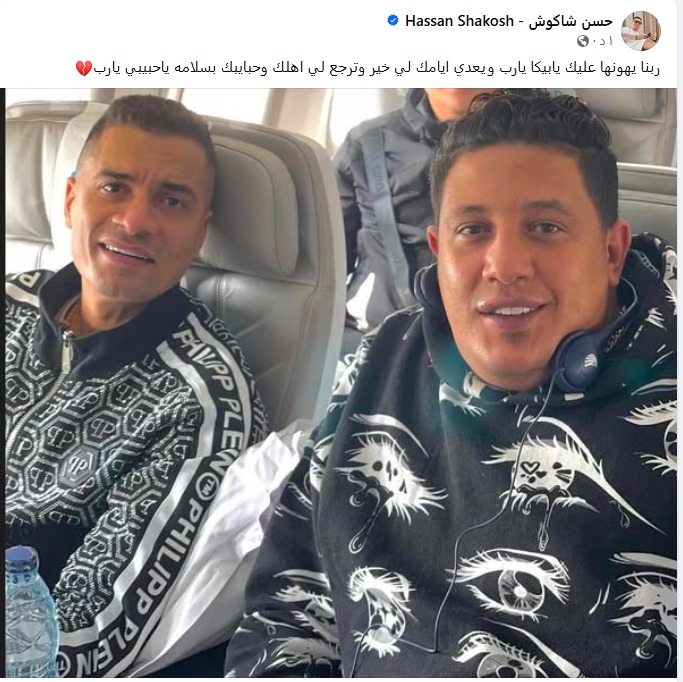 شارك حسن شاكوش، صورة جمعته بـ حمو بيكا، عبر حسابه الشخصي بموقع فيسبوك، وعلق عليها قائلًا: ربنا يهونها عليك يابيكا يارب ويعدي أيامك على خير وترجع لأهلك وحبايبك بالسلامة ياحبيبي يارب.