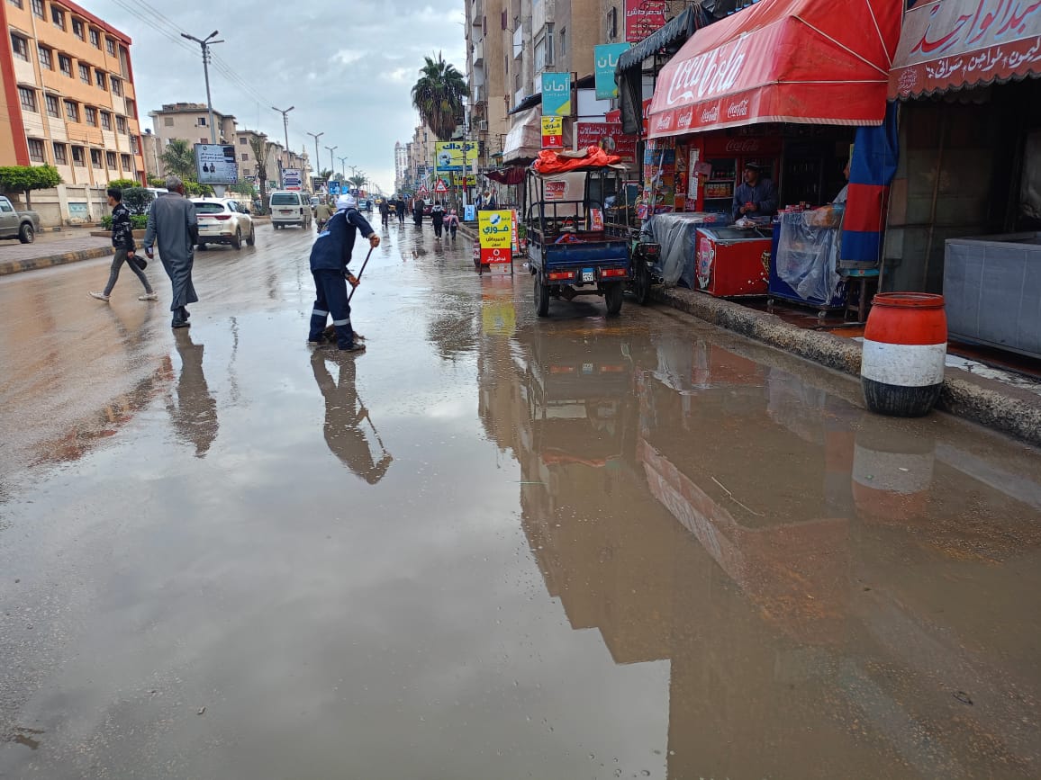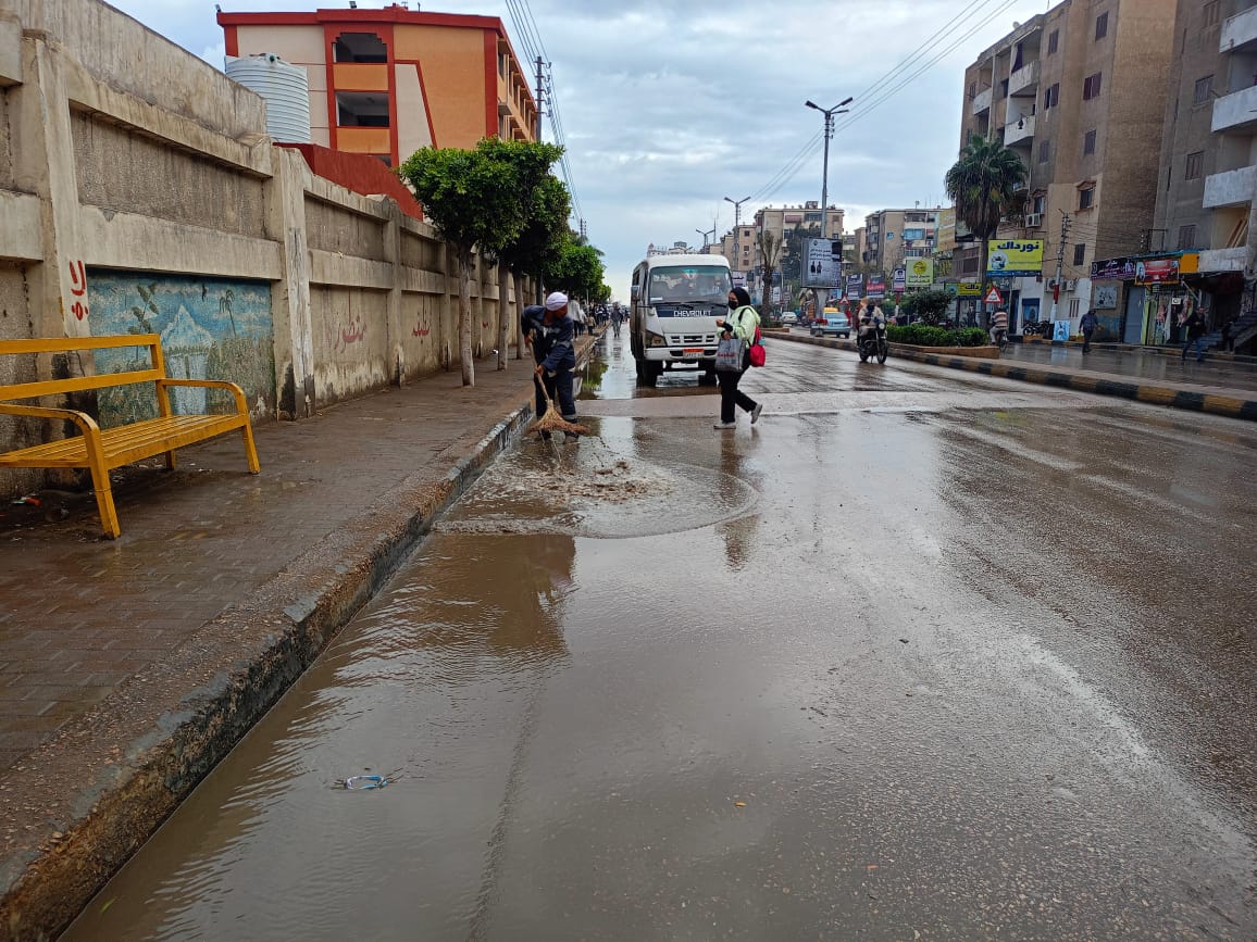 وتابع، أنه تم انتشار كافة المعدات والأطقم بشوارع المدينة استمرار العمل على حملات النظافة ورفع مخلفات مياه الأمطار إثر سقوط الأمطار واستمرار العمل على تطهير خطوط الصرف الصحي وصفايات الأمطار بصفة دورية بمدينة دسوق وتواجده فريق العمل وجولات ميدانية بصفة مستمرة لمحطات الصرف الصحى بنطاق مركز ومدينة دسوق للوقوف على سير العمل بها وتواجد النوتيجية الليلة وتشغيل المحطات بكامل طاقتها واتخاذ كافة التدبيرات اللازمة لمواجهة أمطار والسيول.