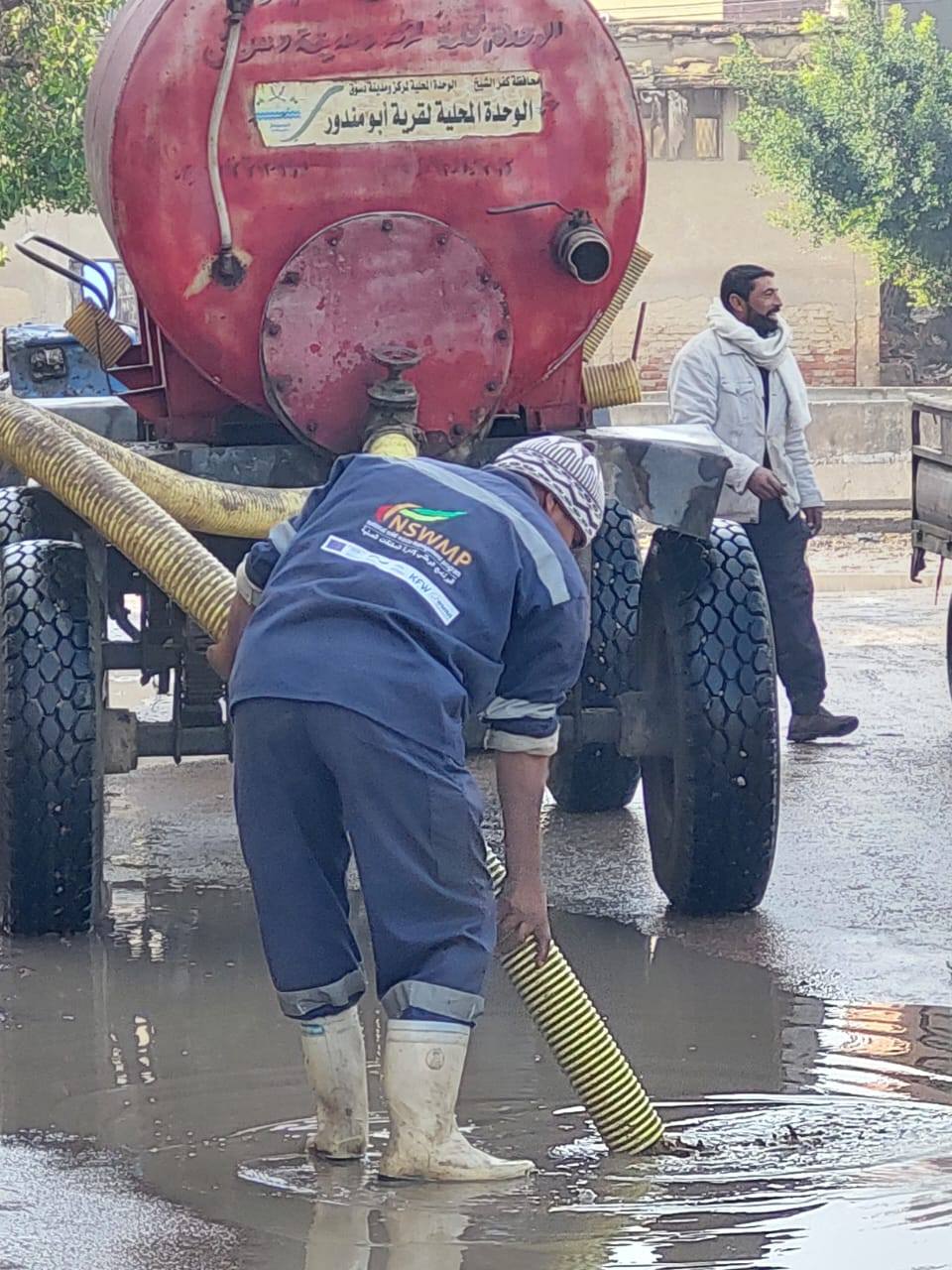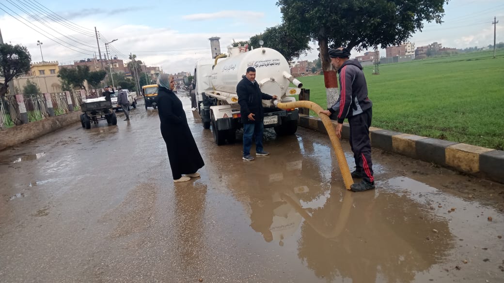 انتشار سيارات وعمال الصرف الصحي بشوارع كفر الشيخ لكسح مياه الأمطار| صور