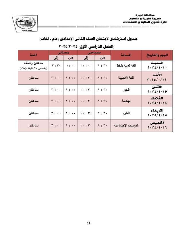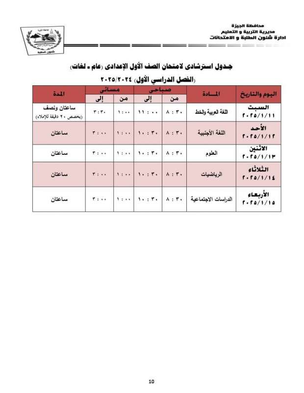 جدول امتحانات نصف العام 2025 بمحافظة الجيزة