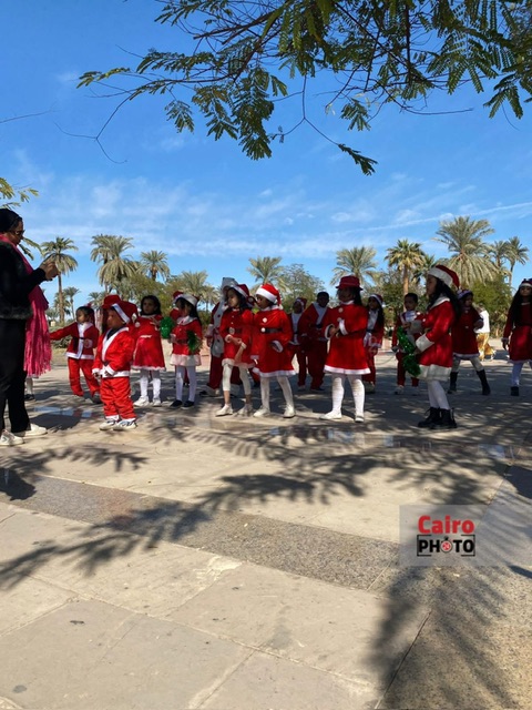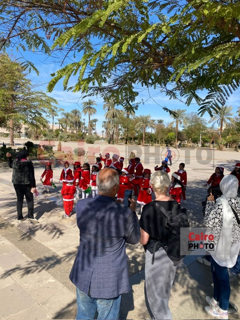 وارتدت الصغار الملابس الفرعونية والشعبية، وملابس بابا نويل، مؤدين فقرات راقصة نالت إعجاب واستحسان السائحين، كما وزعوا الميداليات والهدايا التذكارية عليهم.