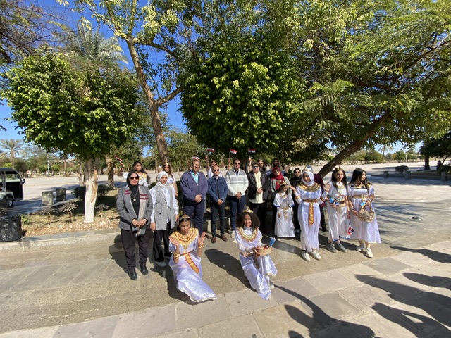 رافق محافظ الأقصر محمد عثمان رئيس السياحة الثقافية، ومحمد حساني مدير مكتبة مصر العامة، الدكتورة رضا عطالله جامعة الأقصر، والدكتور بهاء عبد الجابر مدير اثار البر الغربي، ولفيف من الإعلاميين