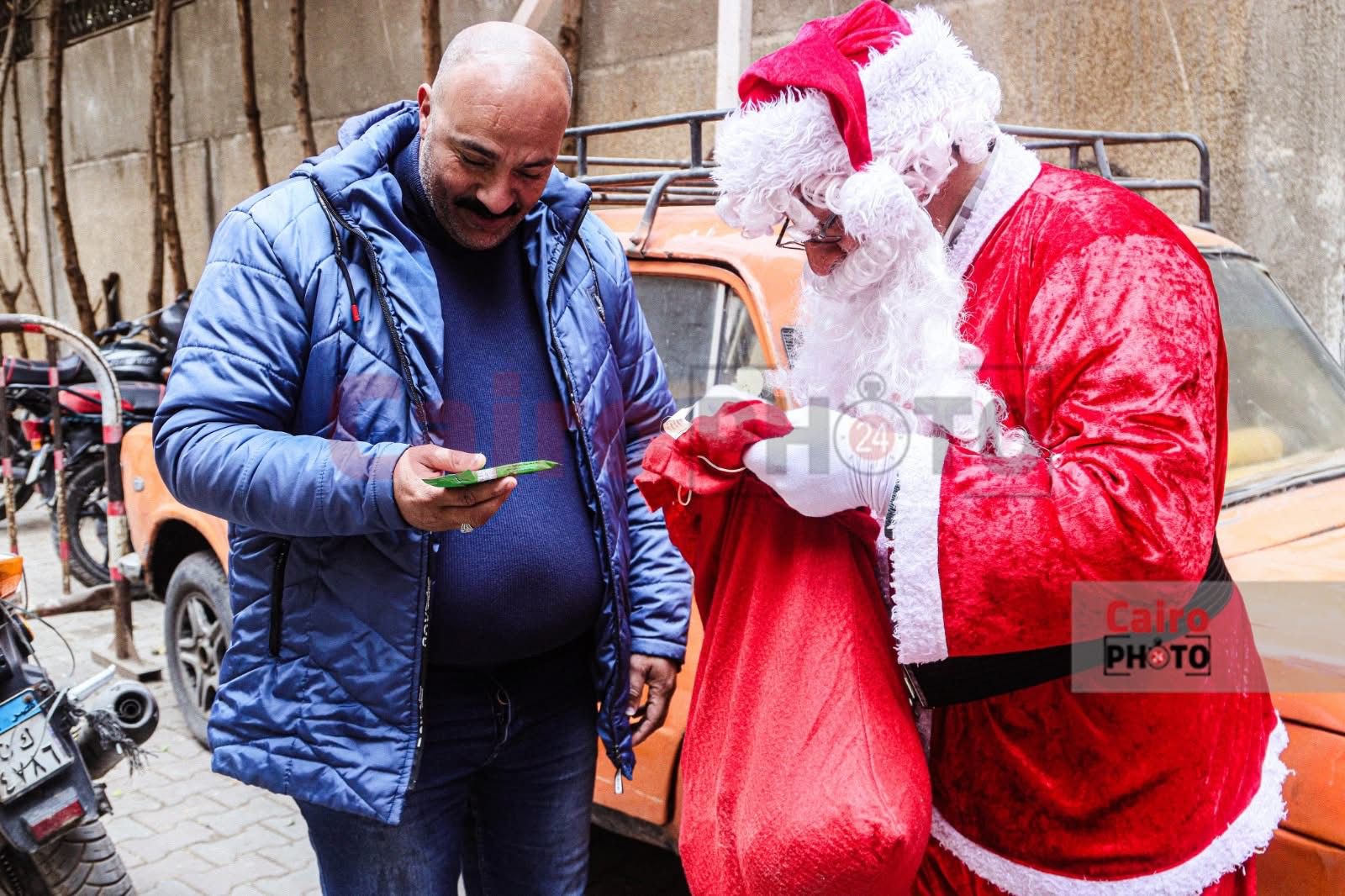 بحب أفرّح الناس.. عم فرحان يرتدي ملابس بابا نويل لإسعاد الصغار: بقالي 18 سنة بوزع هدايا في الشارع